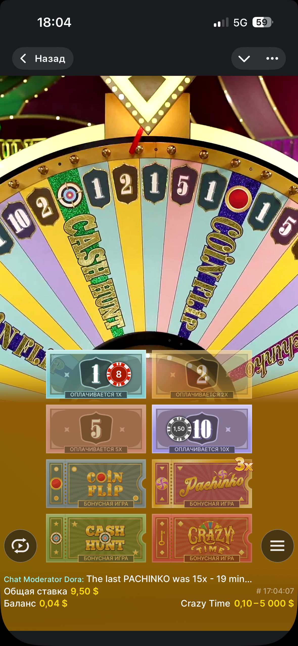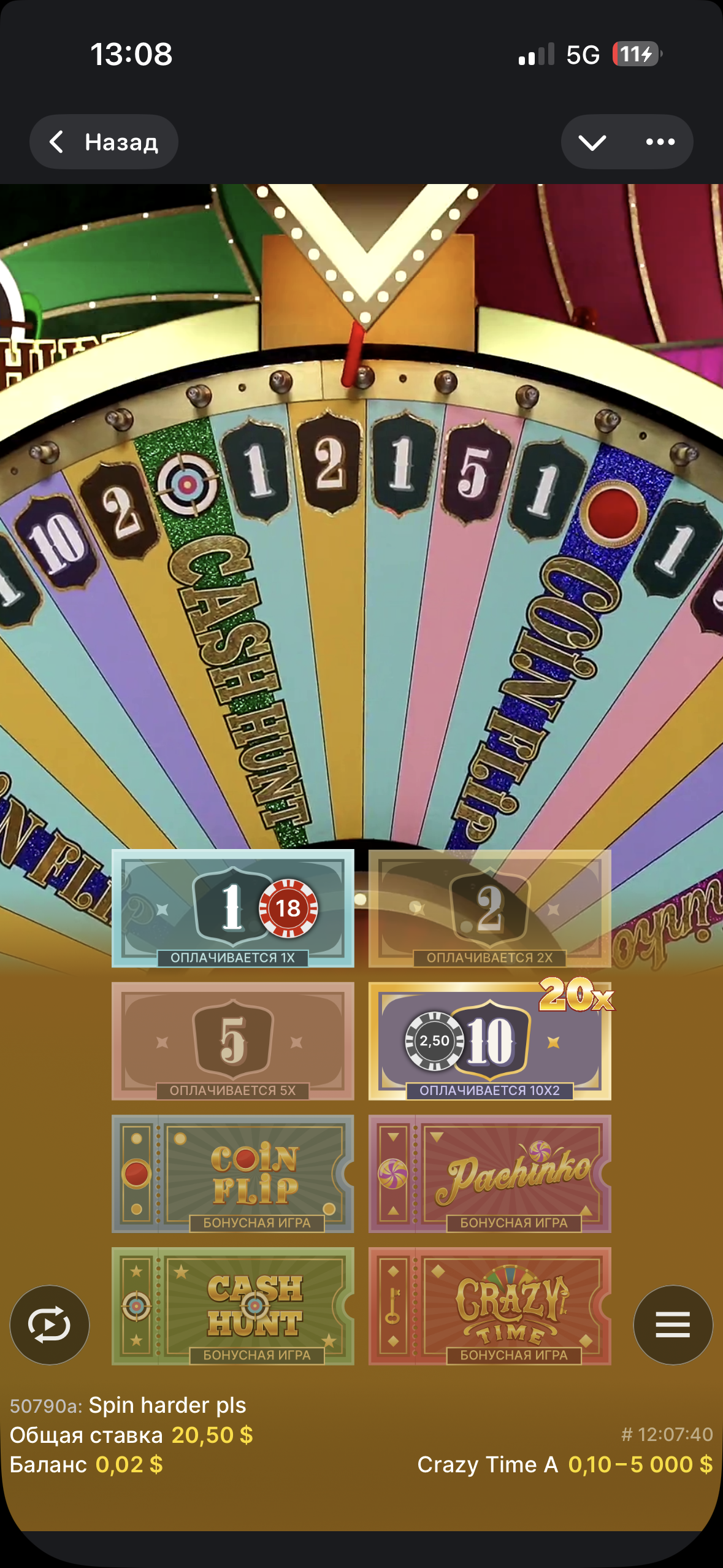 Как то раз забрал промокод на джетоне, зашел сразу в крейзи тайм, поставил 18$ на 1 и 2.5$ на 10, в итоге выпала 2. Потом вечером закинул 9.5$, снова зашел в крейзи тайм, поставил 8$ на 1 и 1.5$ на 10, итог тоже выпала 2. Но самое удивительное тут, что эта 2 выпала в одном и том же месте в 2 ставках…