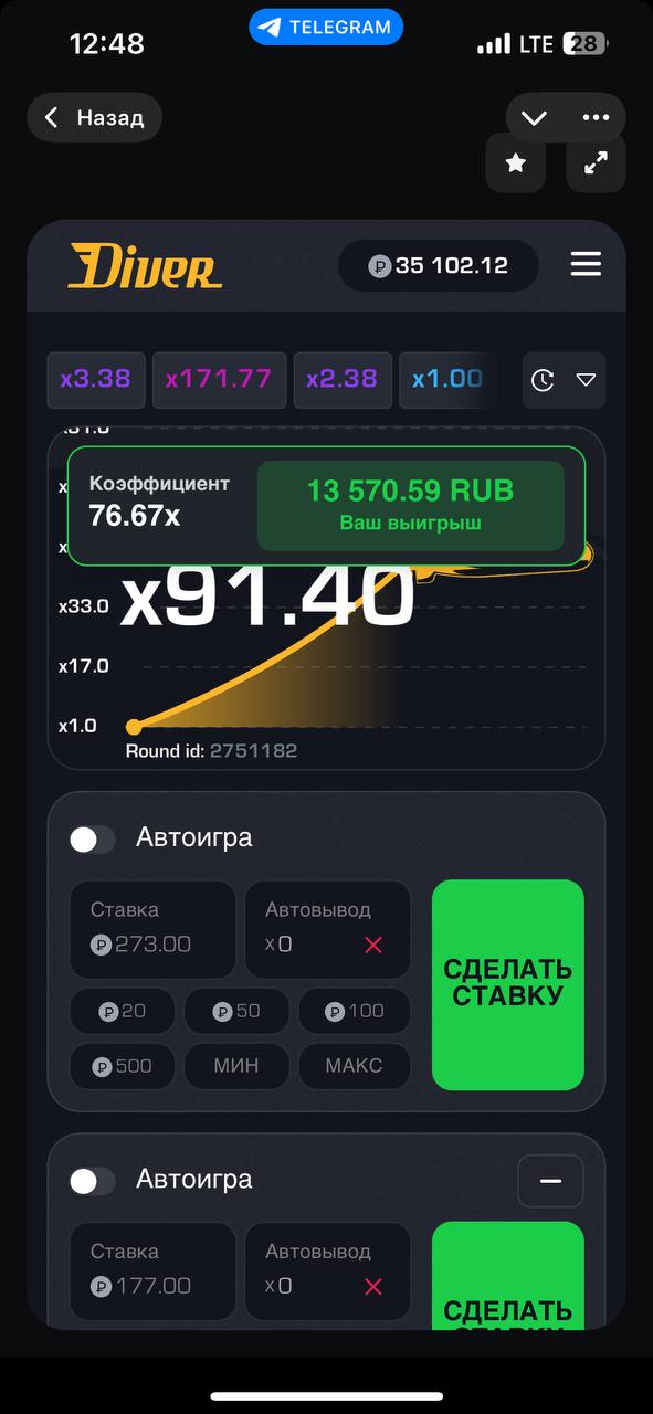 Это был обычный пятничный вечер , я решил депнуть 300 рублей и пойти в замечательную мини игру «ракетка» по началу я забирал маленькие иксы что бы нафармить баланс хоть чуть чуть , но потом взяв волю в кулак я решил сильно рискнуть и дотянул ракету до целых 76 иксов по достаточно не маленькой ставке в размере 177 рублей.