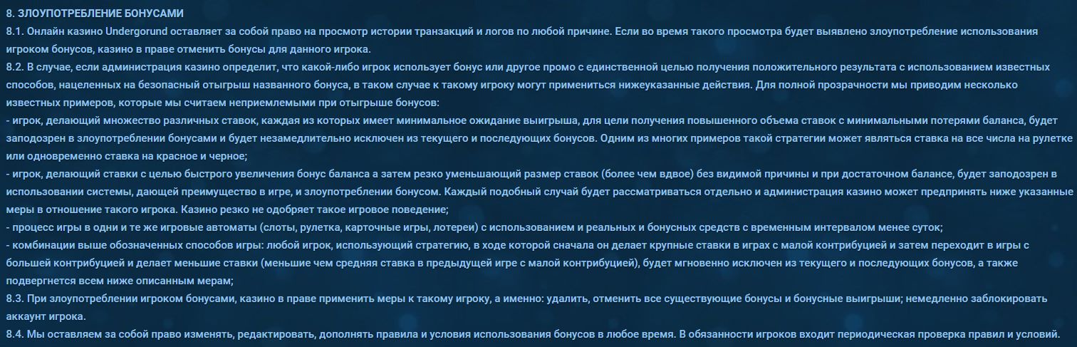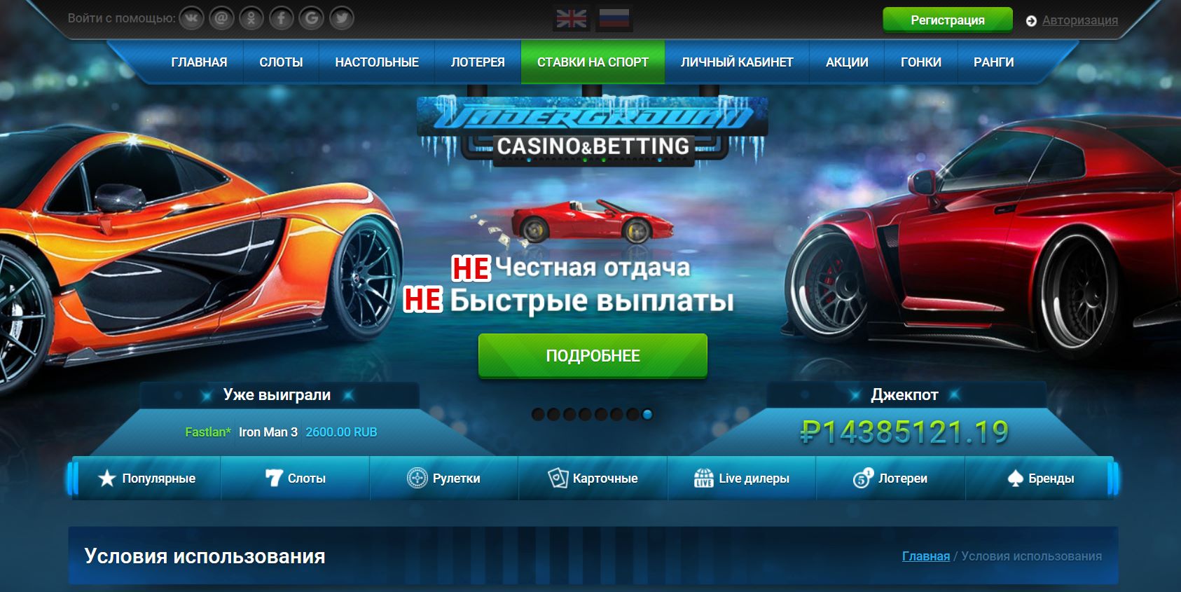 Underground казино: «Вы уже нарушаете правила только играя у нас»