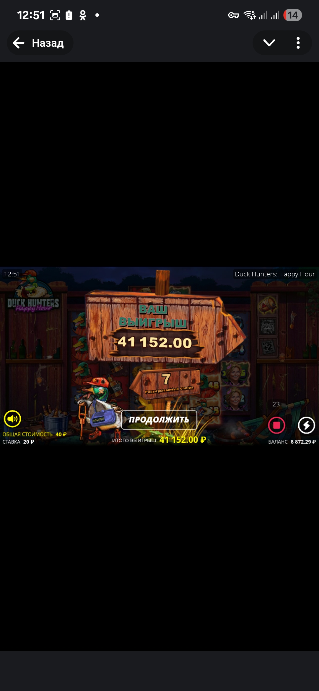 Накопила я значит баллы для покупки фс на Jetton и нужен был депозит, внесла, но такие как я на казино «обижена» поставила себе установочку, что денюжки то надо обратно вывести и ничего там не оставлять😀 Настрой был решительный, при этом хотелось на расслабоне посидеть, покрутить. И выбор мой пал на слот Duck hunters: happy hour от nolimit, уж очень он мне нравится. И с самого начала я поняла, что слот играет! Вот это я удачно зашла, подумала я и начала крутить с шансом. Обратила внимание на то, что бонуски падали с уже на наиграным полем, мне показалось это знаком, что слот должен что-то дать и я не ошиблась! Заветная бонуска не заставила себя ждать!