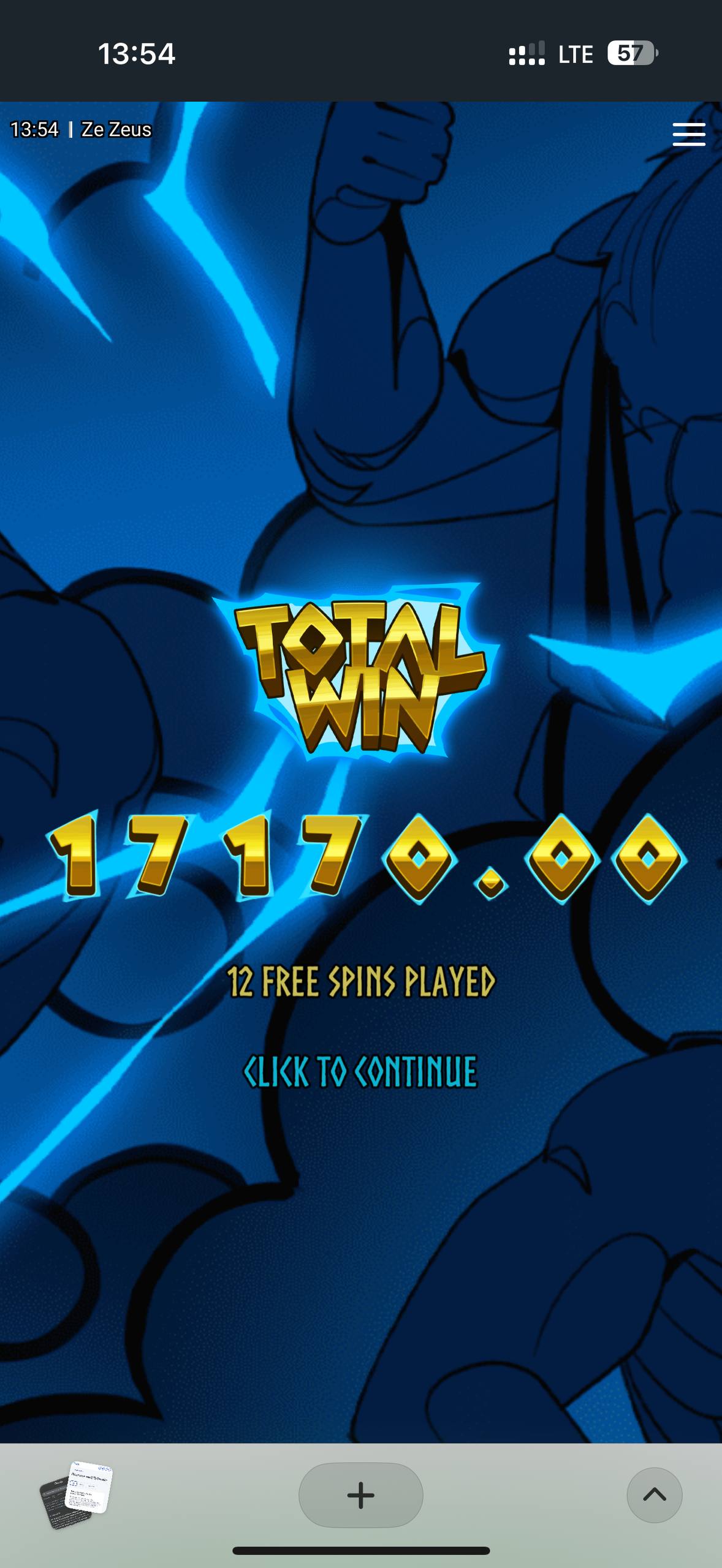 После своего невероятного выигрыша я решил посетить дедушку The Zeus. Он тоже часто помогает мне забустить баланс. И я не ошибся, ведь в этот раз он тоже подогрел мне руку))). С бонуски за 10к дал 17, хотя начало бонуски было вообще ужасным. Я уже думал, что не будет ничего путного, но я ошибался, ведь последним спином он всё же ставит руку. Хоть выигрыш и не такой большой, но всё же очень приятно. Всем заносов!