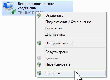 Изменение параметров адаптера - В нужном подключении нажимаем правой кнопкой и в контекстом меню выбираем «Свойства».