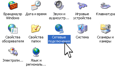 - Если у Вас все еще установлена и благополучно работает Windows XP, алгоритм действий будет абсолютно аналогичен: сначала надо зайти в «Панель управления» и выбрать пункт «Сетевые подключения».