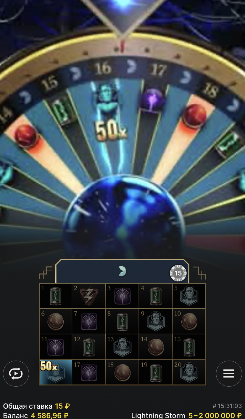 Как мне кажется — довольно неплохой выигрыш при текущем балансе, но у меня не было идей, какой сектор может выпасть в следующем раунде, поэтому я просто поставил копейки на листочек. Что же вы думаете? В этом раунде выпал единственный множитель 50х на Monster Mash, и в итоге колесо остановилось тютелька в тютельку прямо перед ним. Мне очень жаль игроков, ставивших на это число и охотника за иксами, ведь огромный занос был в одном шаге… Но зато я выиграл целых 30 рублей!