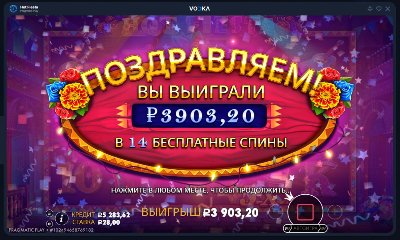 Всем привет, вчера гулял по слотам и крутил их с доп шансом, и мне быстренько упала бонуска в хот фиесте, и с первых же спинов мне поставило 2 коня по 5х множителя, потенциала у бонуски было очень много, но как итог выигрыш составил почти 4000 рублей, что вполне неплохо