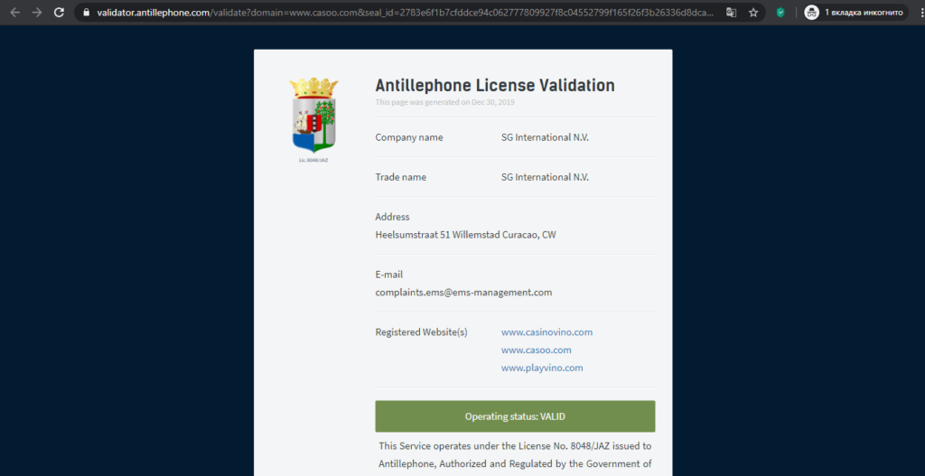 - Какие казино работают по данной лицензии и какие их URL адреса;