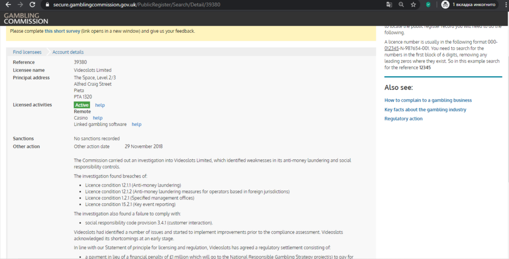 Если казино получало лицензию Великобритании, то будет предоставлен полный отчет, в котором указывается: