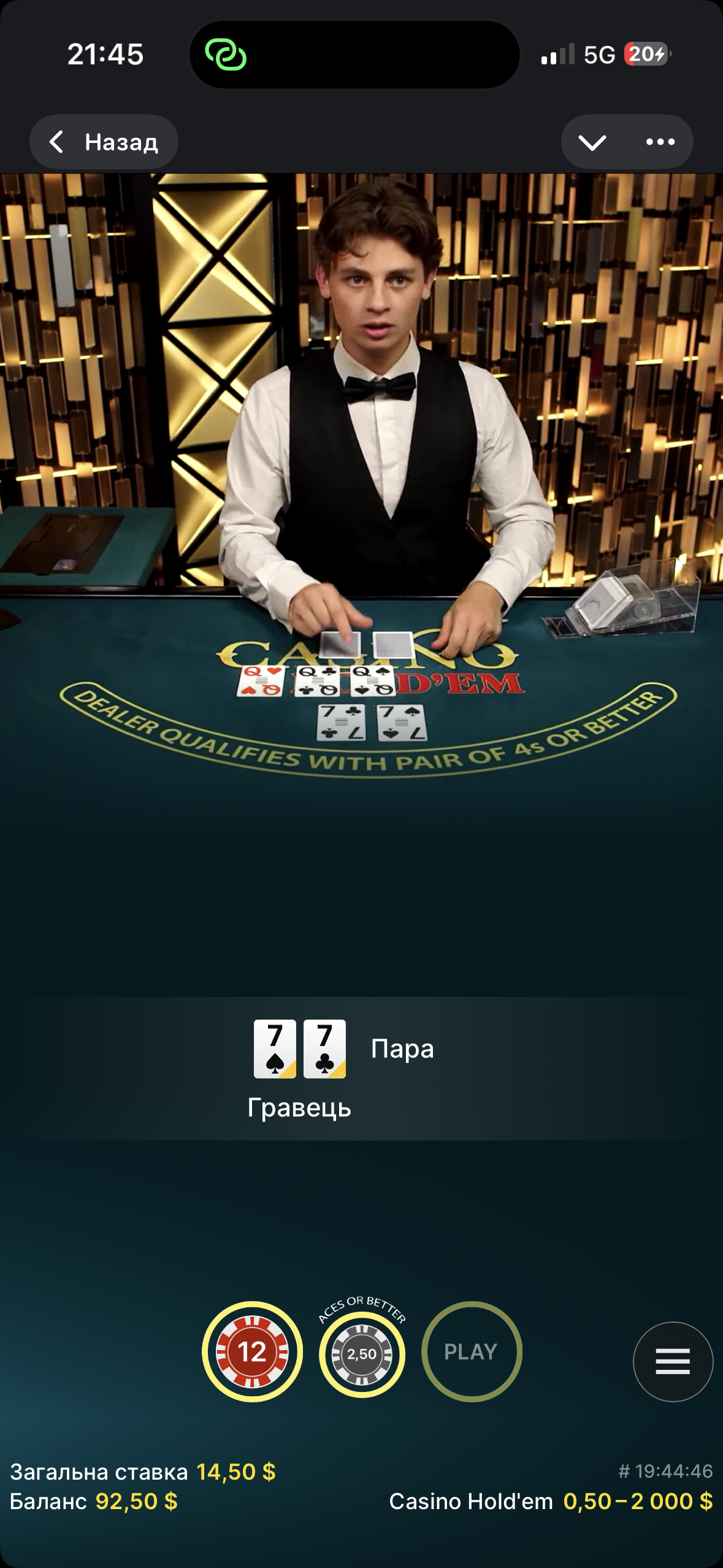 Зашел поиграть в покер с балансом всего около 100$, сначала ничего не выдавало, но потом в одной с раздач мне выдало 2 семерки, я сразу подумал что есть шанс на бонус, но не ожидал что все будет на столько хорошо.