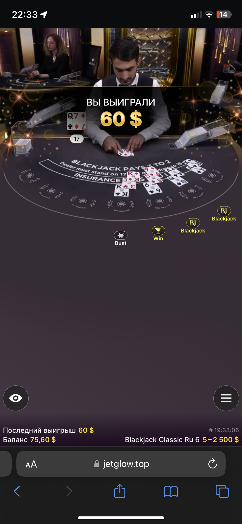 В связи с последней сессией в покере — дело дрянь, надо срочно камбэкать баланс. Зашел для этого в блэкджек отыгрывать по своей любимой стратегии — all-in, но в этот раз занял три бокса. Как же мне повезло в этой раздаче: первая рука — Блэкджек, ещё и бонусный стрит сыграл. Вторая рука — тоже Блэкджек, а на третьей добрал 20.