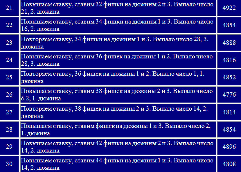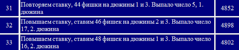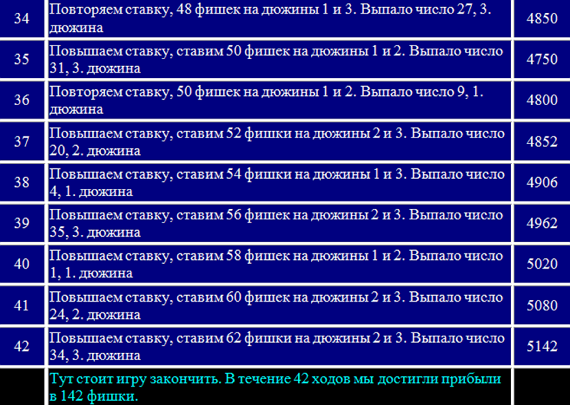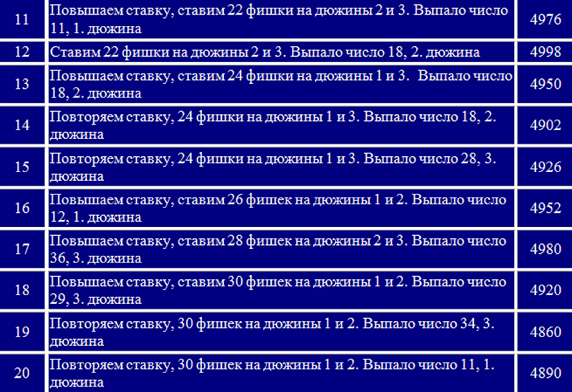 Можно сыграть и на трех дюжинах. В этом случае ставки делаются на одну выбранную дюжину, но параллельно идут три игры. Такой вариант требует от игрока больше внимательности, чем стандартная версия стратегии.