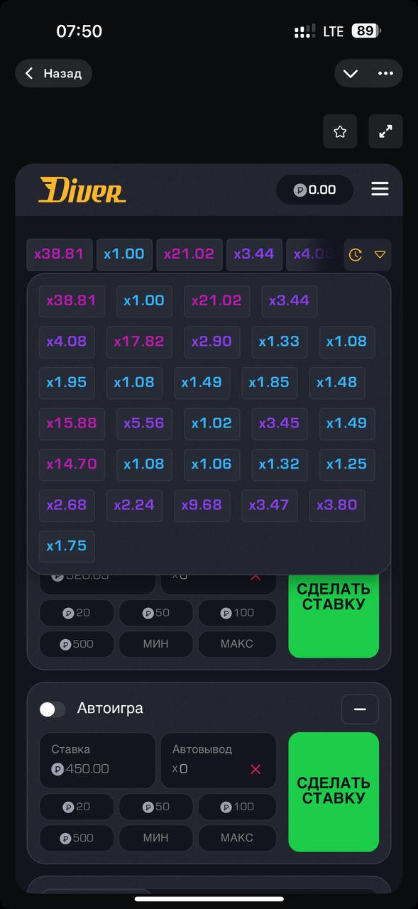 Я очень люблю разные crash-игры, но особая любовь у меня к Diver от провайдера By In Out.