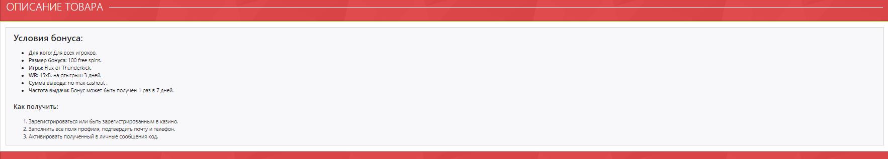 Чтобы узнать детали выбранного бонуса, необходимо кликнуть по заинтересовавшему предложению. Они будут перечислены в таблице, расположенной под картинкой и включать все характеристики, в том числе и самые важные сведения о гемблинг-площадке, предоставившей специальный бонус для магазина Латеста. Под таблицей находится основное описание товара. Его также надо внимательно прочитать перед покупкой. Скрин 4.