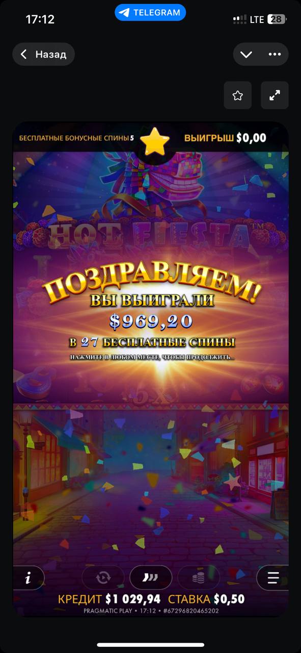 На следующий день мне поступили фри‑спины. Я выбрал слот «Ход Фиеста» от Pragmatic Play. Играл, постепенно расходуя спины, и уже почти исчерпал лимит, когда выпал бонус‑раунд с тремя спинами и открытыми окошками.