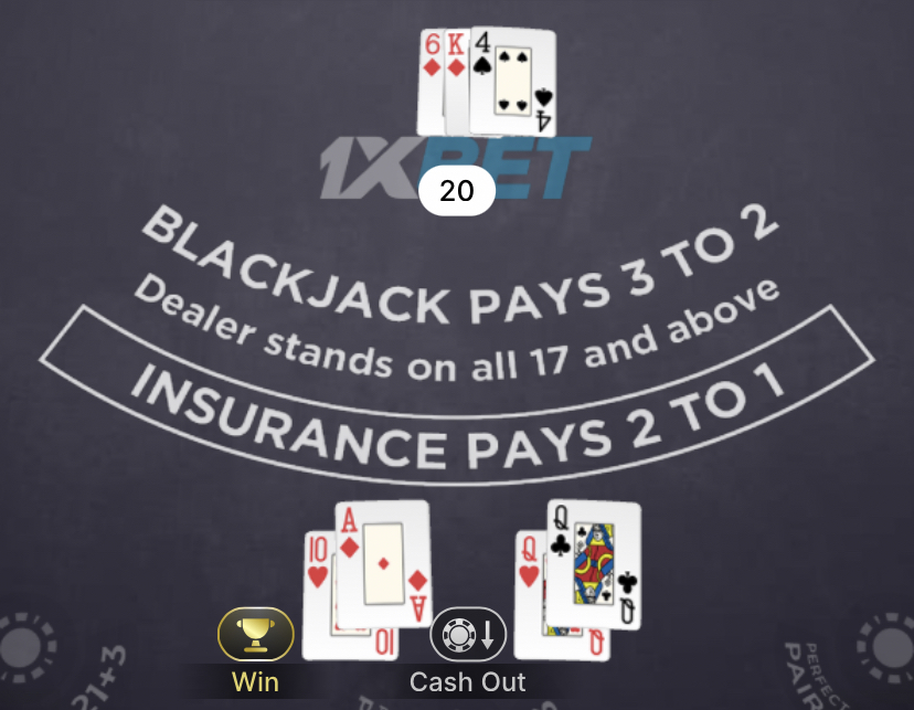 как оказалось, не зря, ведь у дилера добралось 20 очков и если бы не выкуп — была бы ничья, а не плюса. Выкуп в блэкджеке — это крайне полезная функция