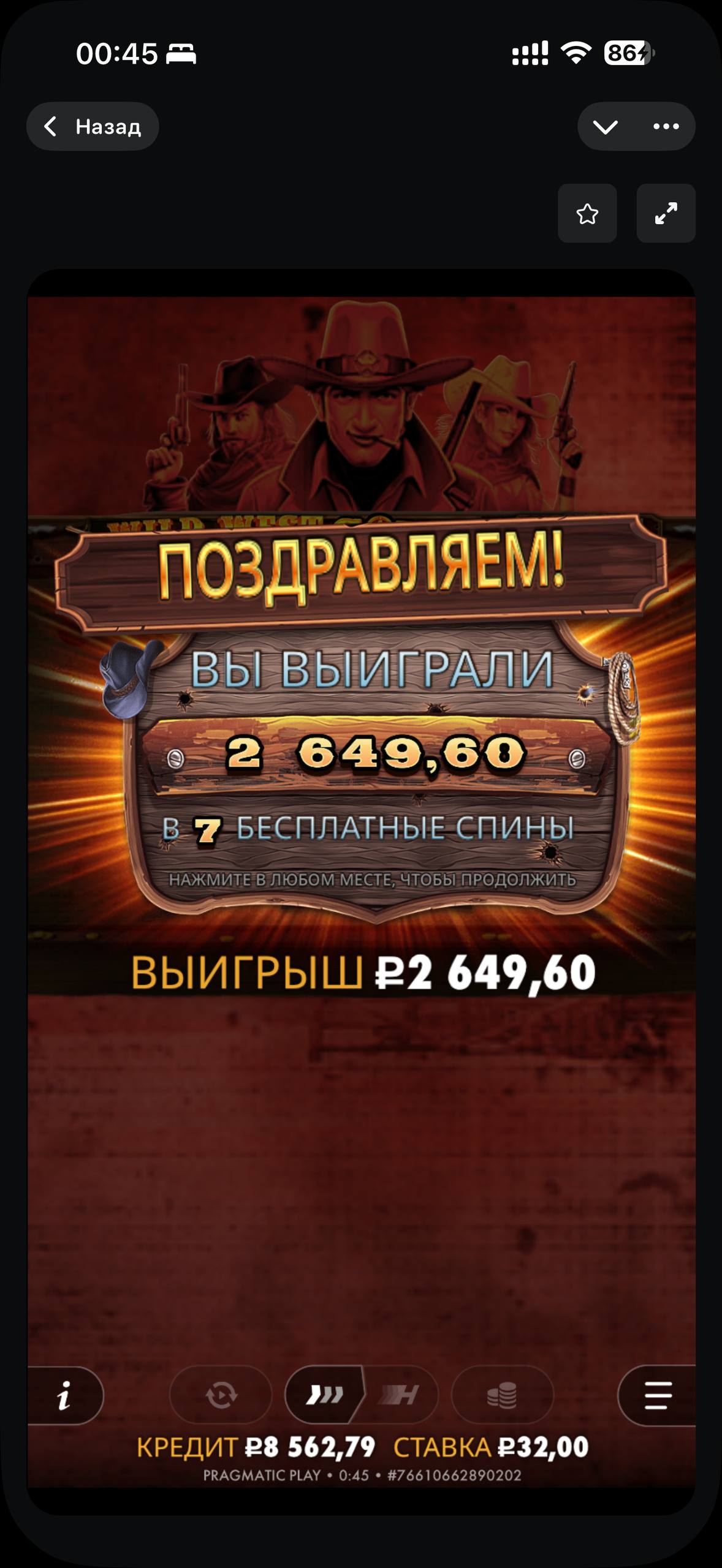 Всех приветствую, лудоманы, сегодня была небольшая сессия. Также небольшой деп, — 10000 рублей. Решил сразу зайти в Wild West Gold, купил бонуску за 3200 рублей. Было пару хороших сыгровок, но вилды никак не соединяло! Как итог — 2649,60 рублей, бонуска себя не оправдала. В последнее время вообще любой ковбой сыпит мало. Всем спасибо за прочтение, всем заносных сессий!