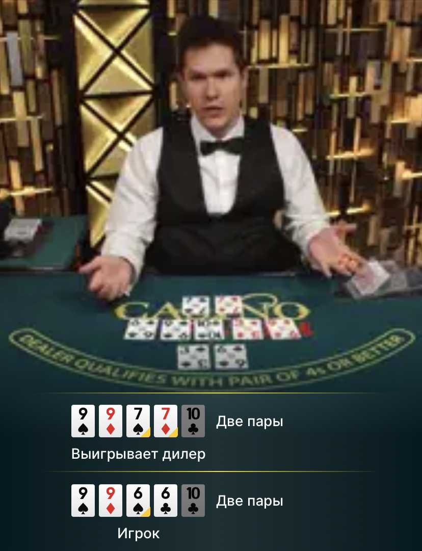 Мне уже так надоел блэкджек с этими бесконечными доборами в 21 у дилера, что я решил полностью погрузиться в покер. Полное название этого режима от Evolution — Casino Hold’em.