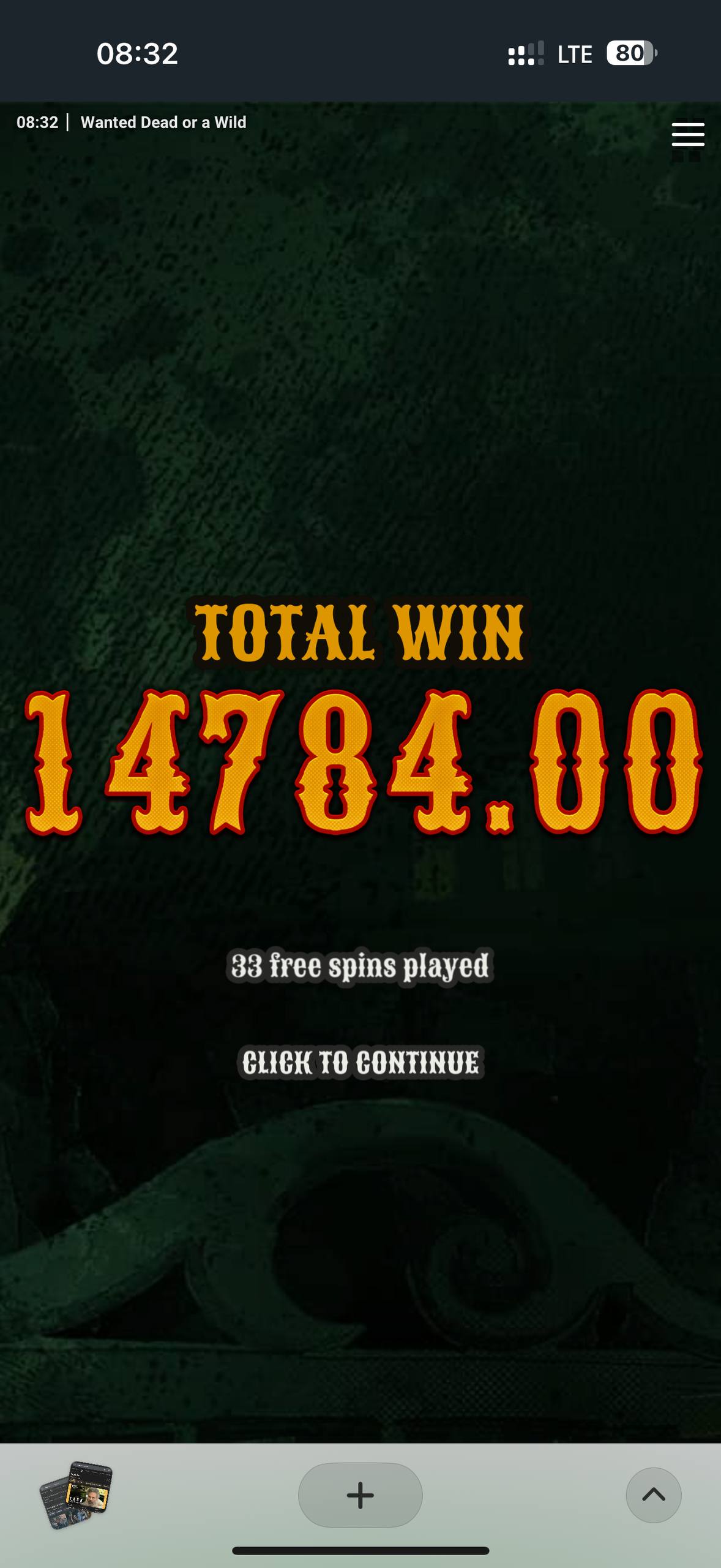 Всем привет! После своего микро-заносика в Le Bandit я пошёл ещё в один слот от Hacksaw — Wanted Dead or a Wild. Купил топовую бонуску за 4000 рублей. Нападало очень много мультиплееров и вилдов, и в итоге мультиплеер был 24, а вилдов — 14. Ну и очевидно, что бонуска должна была дать много — так и произошло. Бонуска дала чуть больше 14к, чистый плюс с бонуски — 10к рублей. Очень приятно. Всем добра!