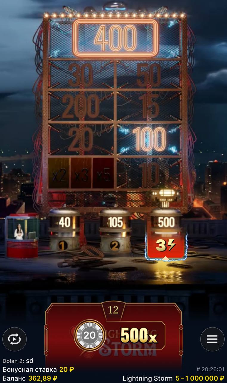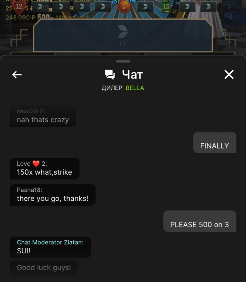 Как-то раз Я играл в лайв Lightning Storm от провайдера Evolution, название игры происходит от топовой бонуски красного цвета на единственном секторе колеса. Я поймал её, и по приколу написал в чат на английском «Пожалуйста, 500х на третий выбор». Чтобы было понятно, обычно в этой бонуске даже 100х тяжело получить. Я выбрал 3, и туда реально насыпали 500х, будто бы прочитали и специально по моей просьбе дали именно столько. Это было очень удивительно