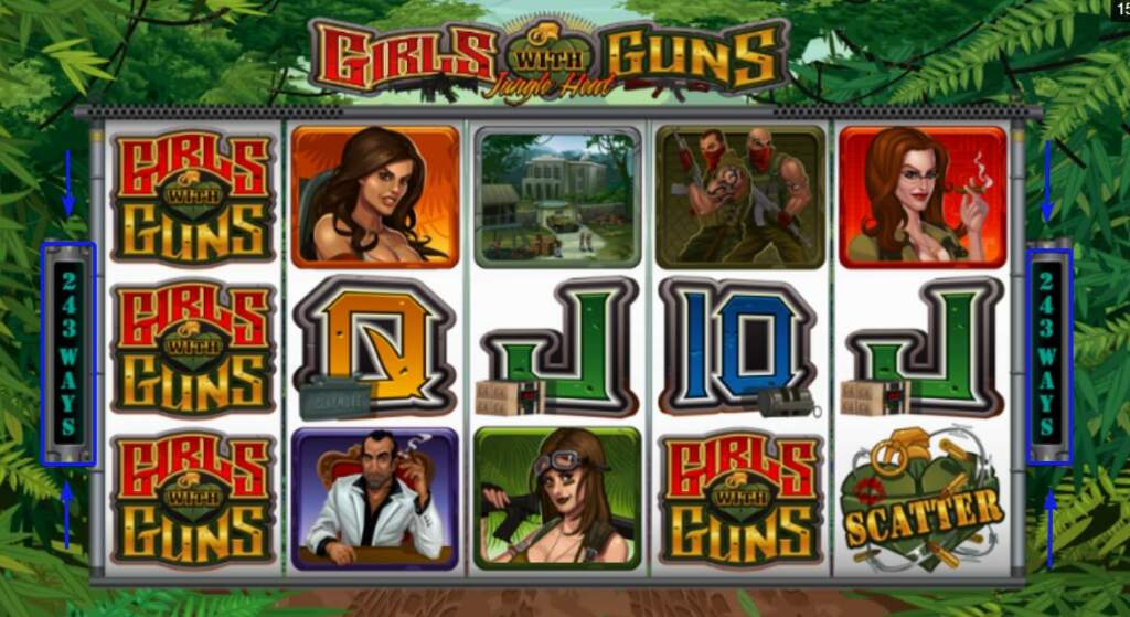 - 243 lines – когда для получения комбинации на слоте со схемой 5х3 достаточно, чтобы одинаковые символы выпадали на последующих барабанах, один за другим (например, Immortal Romance, Girls With Guns);