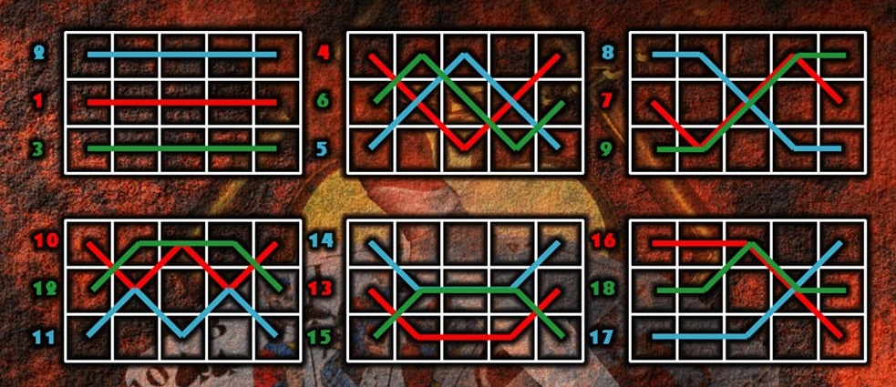 Вполне типично для разработчиков наносить информацию о количестве линий на главной игровой сетке. По периметру самого рилсета, в месте, где начинается или заканчивается линия. Но если их очень много (243, 1024 и т.д.), то детально отобразить такую нумерацию невозможно и количество обозначается где-то возле барабанов.