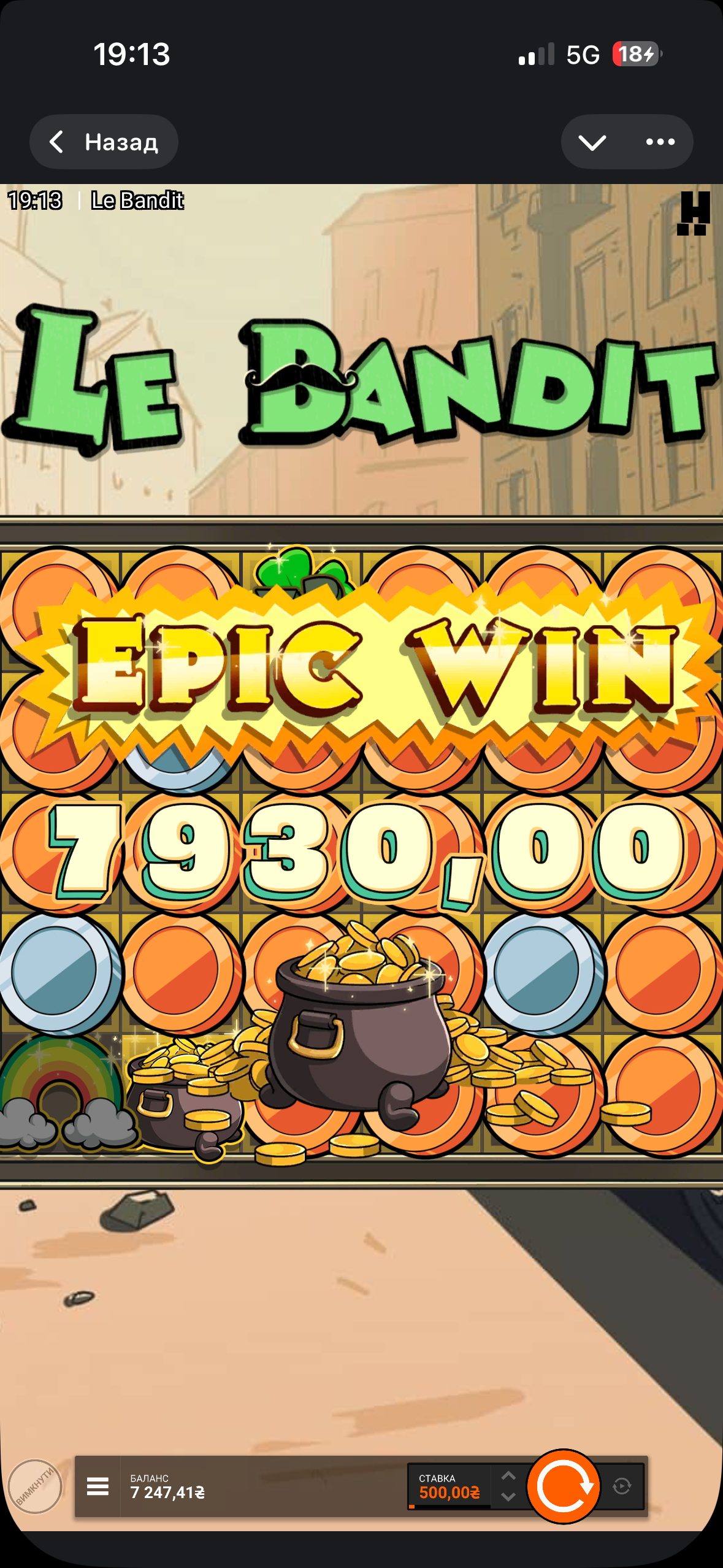 Однозначно ПОЗДРАВЛЯЮ с таким, можно сказать «эпичным» выигрышем!! Видать «бандит» расщедрился и решил снова поделится монетами)