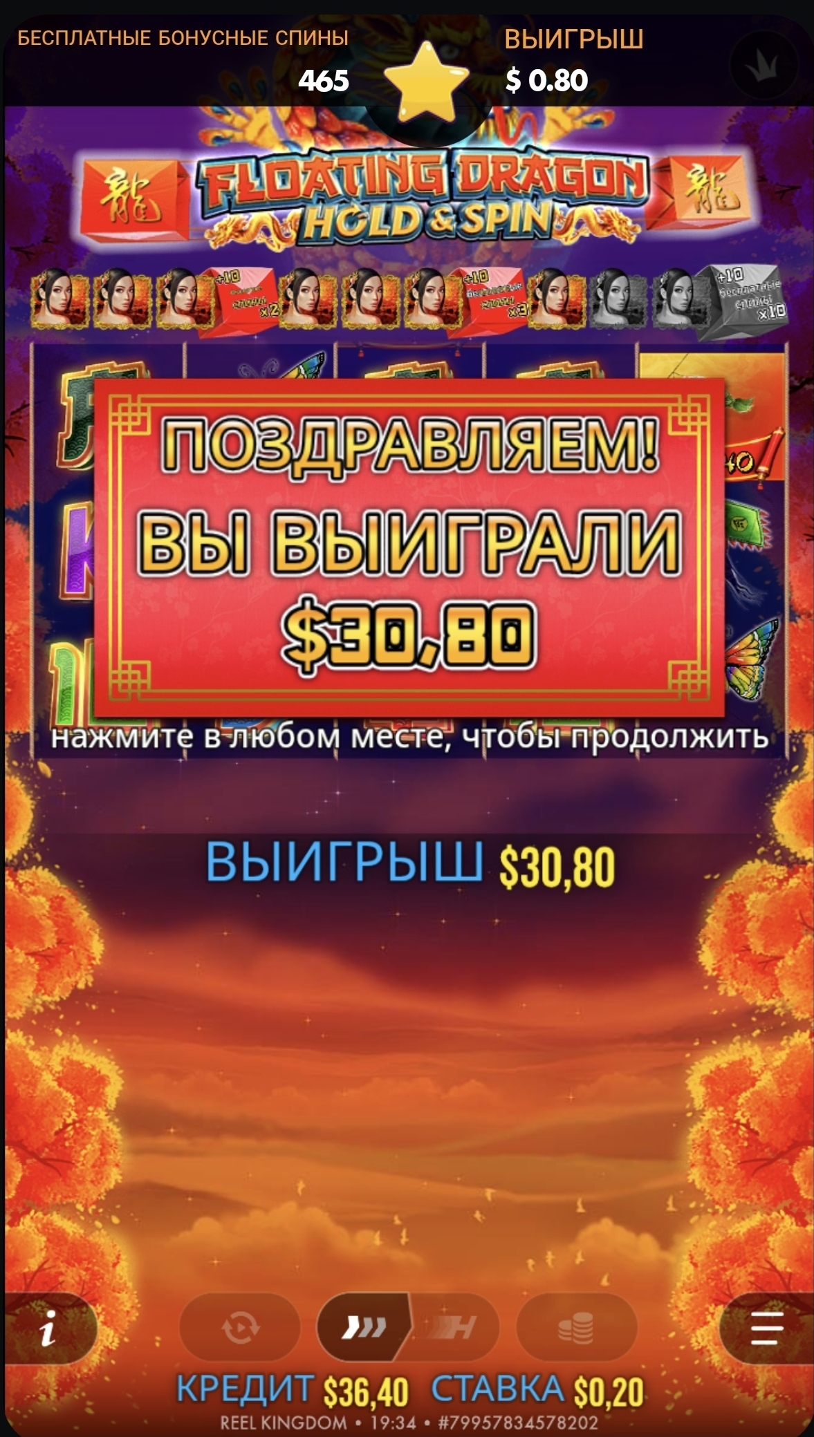 Классический сценарий для Floating Dragon: на бумаге потенциал под х500+, а по факту реализация часто в районе «середины» — у тебя вышло около $150, что для этого слота вполне рабочий исход.