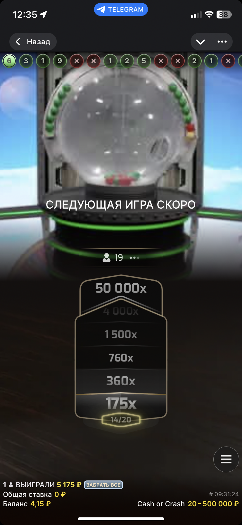 Пару недель назад я уже писал про этот лайв, и как проиграл там за 15 секунд приличные деньги. Но это меня не остановило — я случайно засмотрелся без баланса на сессию, где оно выдало аж 14 зелёных шаров, что позволило ставкам игроков добраться до уровня с коэффициентом 175х!