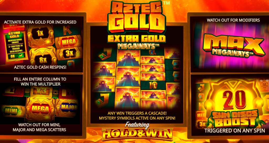 Атмосфера отлично передана визуально и через звуковые эффекты. Но зная имя провайдера это не удивительно. Так как ISoftBet давно закрепился среди лидеров производителей современных азартных игр для казино. А релиз представляет более совершенную модификацию слота Aztec Gold Megaways 2019-го года. Игровой автомат Aztec Gold Extra Gold с функцией мегавэйс насыщен призовыми особенностями. Например, Aztec Gold Cash Respins – это бонусный раунд Hold and Win, в котором игрок может за несколько респинов выиграть джекпот в 1000 ставок и кучей дополнительных множителей. Сразу отметим, что разработчики заявили о потенциале в 20 000 ставок.🌀 Бог древних ацтеков может снизойти и благоволить игроку. Об этом гемблер узнает, увидев солнечный лик Монтезума и тогда – либо гарантированный биг вин, либо перезапуск призового модификатора с респинами, что способствует солидной победе не меньше, чем первый вариант.