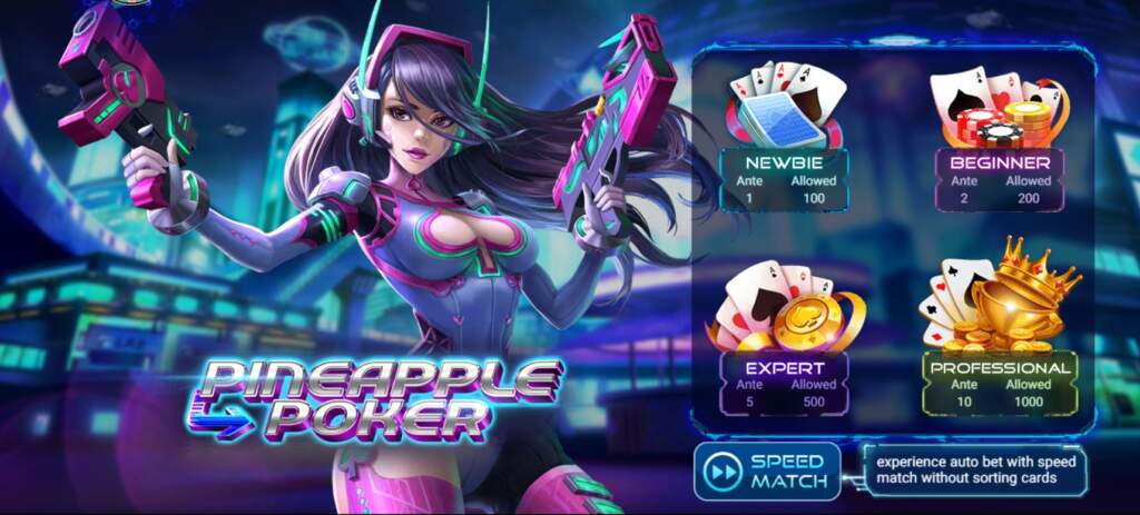Компания Spadegaming начала свою работу в сфере онлайн гемблинга в 2007-м году и взяла ориентацию на азиатских игроков. Но это не значит, что любители слотов из других стран не могут насладиться их разработками. Более того – в декабре Spadegaming выпускает игровой автомат с интересной разновидностью китайского покера «Ананас» — Pineapple Poker.