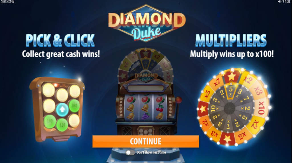 Команда разработчиков Quickspin решила вспомнить с чего начиналось эпоха слотов, а именно — одноруких бандитов. 🎰 Причем, новый игровой автомат шведского провайдера вобрал в себя несколько этапов эволюции этих самых трехбарабанных слот-машин с рычагом. Возможно, именно поэтому он получил название Diamond Duke, что на русском звучит, как «Алмазный герцог».
