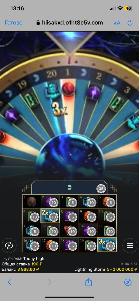 Я играл в лайв Lightning Storm, про который часто пишу другие блоги. В очередном раунде я поставил на все числа, кроме 1. Таким образом, закрыто было 19 чисел.