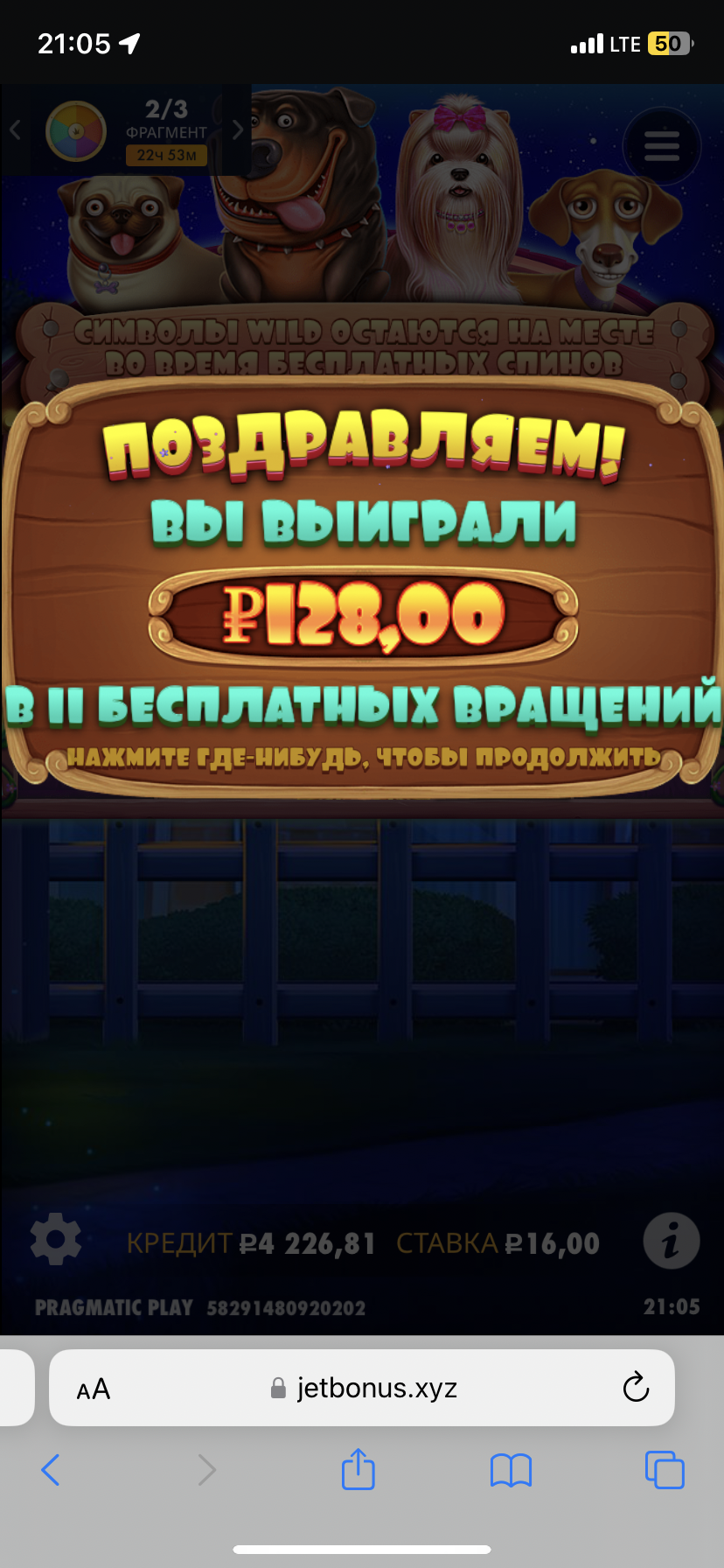 Я не считал, сколько спинов я сделал, но точно крутил и не прерывался почти десять минут, время прошло как в тумане. Я молчу про Wheel Drops — бонуски снова очень порадовали и вызвали положительные эмоции. Спасибо собачкам 🐶