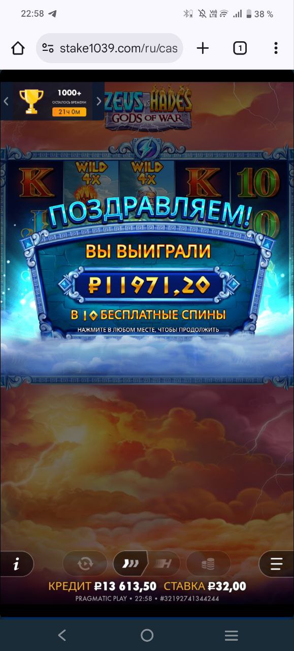 Я сразу пошёл и приобрёл бонус в очень тяжёлом слоте «Zeus vs Hades — Gods of War». Каково было моё удивление, когда за первый спин он поставил 2 шторки! Но, к сожалению, больше штор мне не упало.