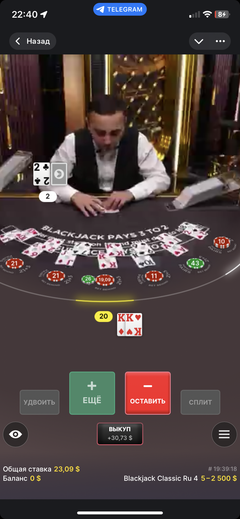 Постоянно играя в лайв игры, есть одна существенная проблема, которая портит игровой процесс: нестабильное интернет-соединение может привести к ухудшению качества видеотрансляции или вовсе его видно не будет, и это у меня просто жесть как часто происходит. Вот я играл в блэкджек, поставил all-in руку и 2$ на ппшки. У меня оказалось два Короля одинакового цвета, но не одинаковой масти, хотя сначала показалось обратное. Обрадовался, как выплате 25:1, но оказалось 12:1. И так сойдёт, конечно, в любом случае, но плохое видео приводит к ошибочному восприятию