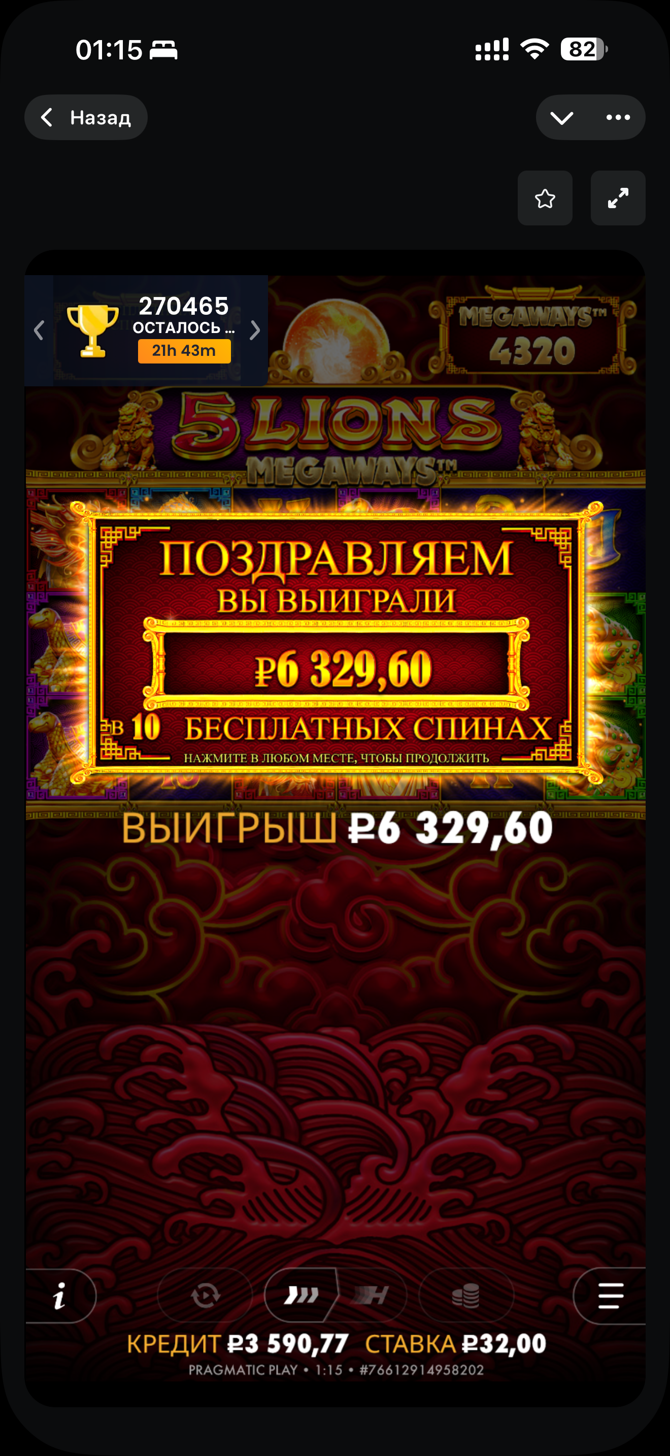 Всем привет! Я приобрел бонуску в 5 lions megaways на джеттоне. Купил я ее за 3200 рублей по ставке 32 рубля. Обычно я выбираю самую волатильную, но в этот раз решил довериться удаче и выбрал рандомную. Выпала та, что перед самой волатильной. Сразу начались сыгровки, но не очень дорогие символы в основном тузы и короли, картинки не играли вообще, но один спин поставил полную поляну рыб, а еще и было 2 льва и спин дал приятные 4000. В итоге больше ничего не сыграло, а Бонуска дала 6300 рублей. Очень приятно наблюдать, когда бонуски окупаются. Всем желаю только таких бонусов!!!