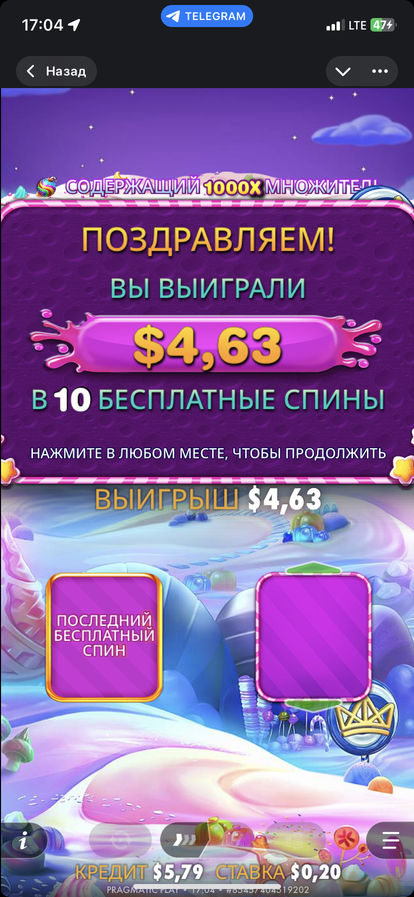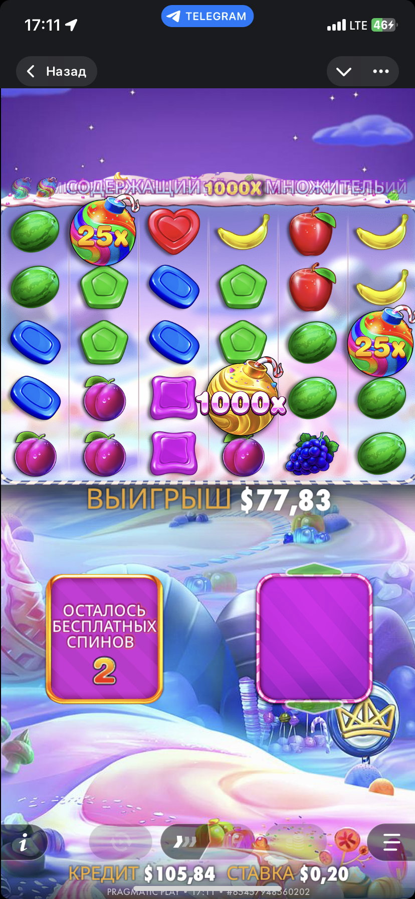 Во второй раз повезло больше — даже почти окупилась стоимость бонуски. Ну а чтобы не было скучно — слотик впервые за 3 месяца подкинул мне бомбочку 1000х, которая, правда, не сыграла. Ну теперь я хотябы увидел, что это существует и почему слот называется 1000.