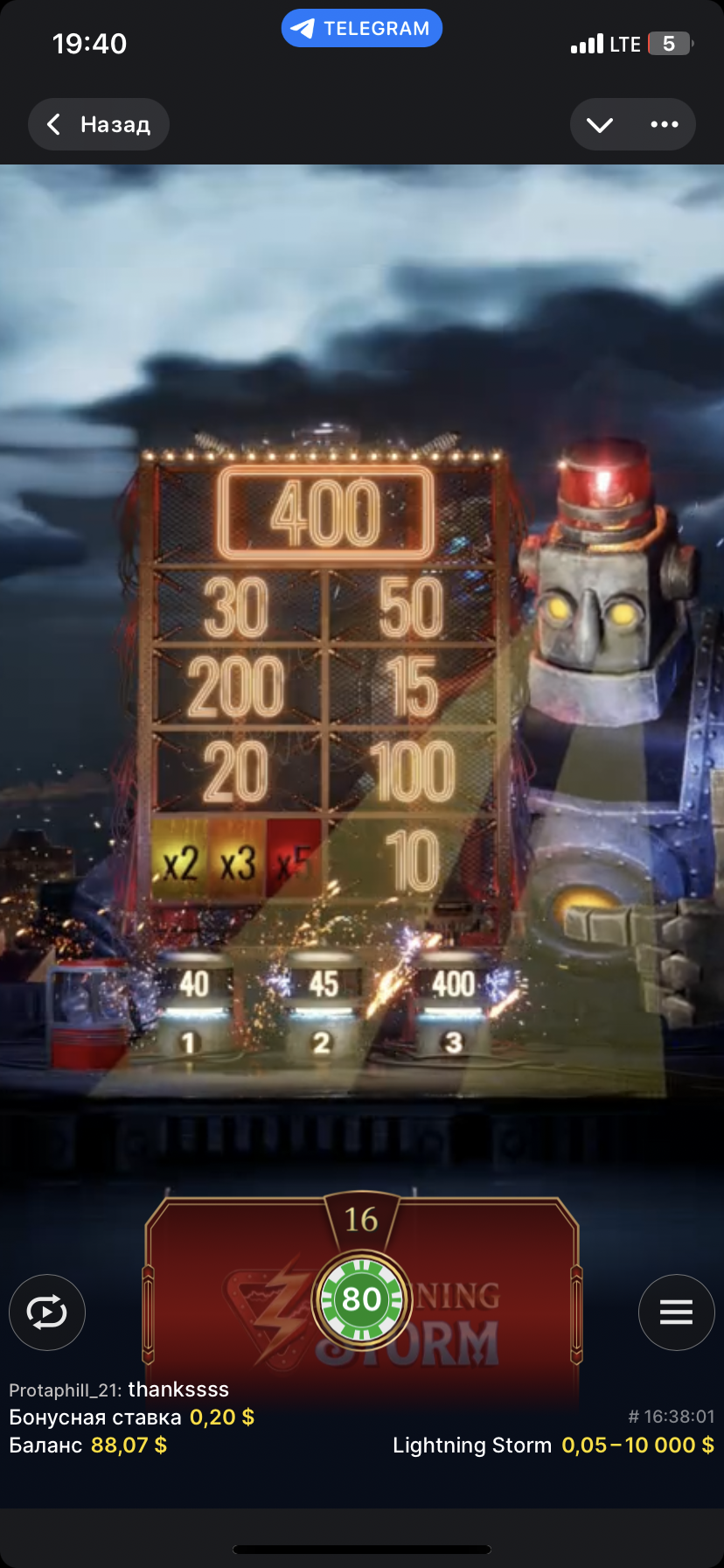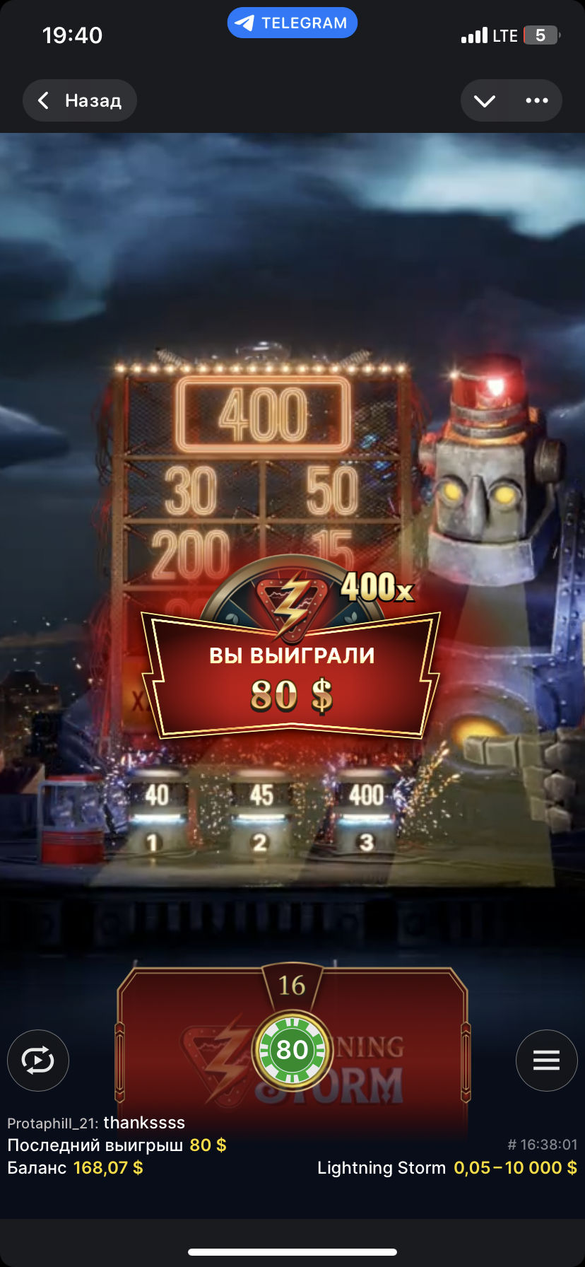 | Параметры | Статья Поймал 400х в бонусе Lightning Storm подготовлена и опубликована |