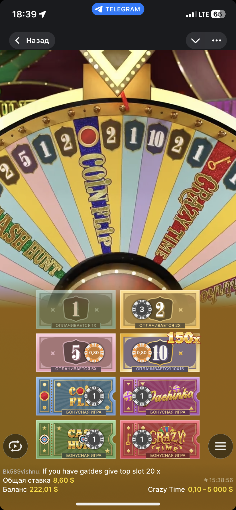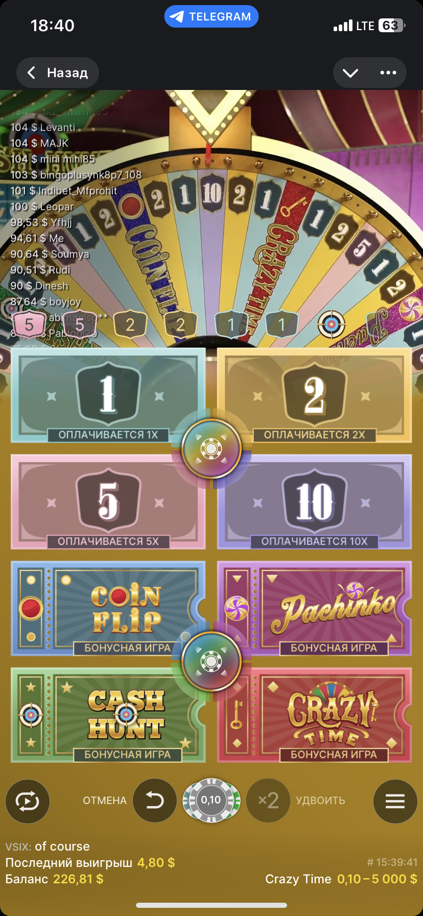 Один раз я чуть не поймал десятку в моём «любимом» Crazy Time, которая принесла бы мне выплату в 140$. Об этом я написал отдельный блог, но ситуация повторилась.