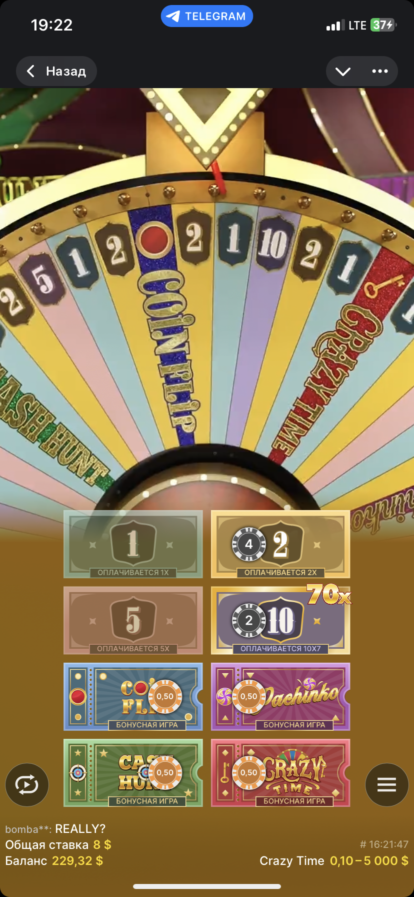 Естественно, когда на десятку падает дополнительный икс и стоит нормальная сумма, десяточка — перекатит на один сектор. А что, могло быть по-другому? Это же крейзи тайм.