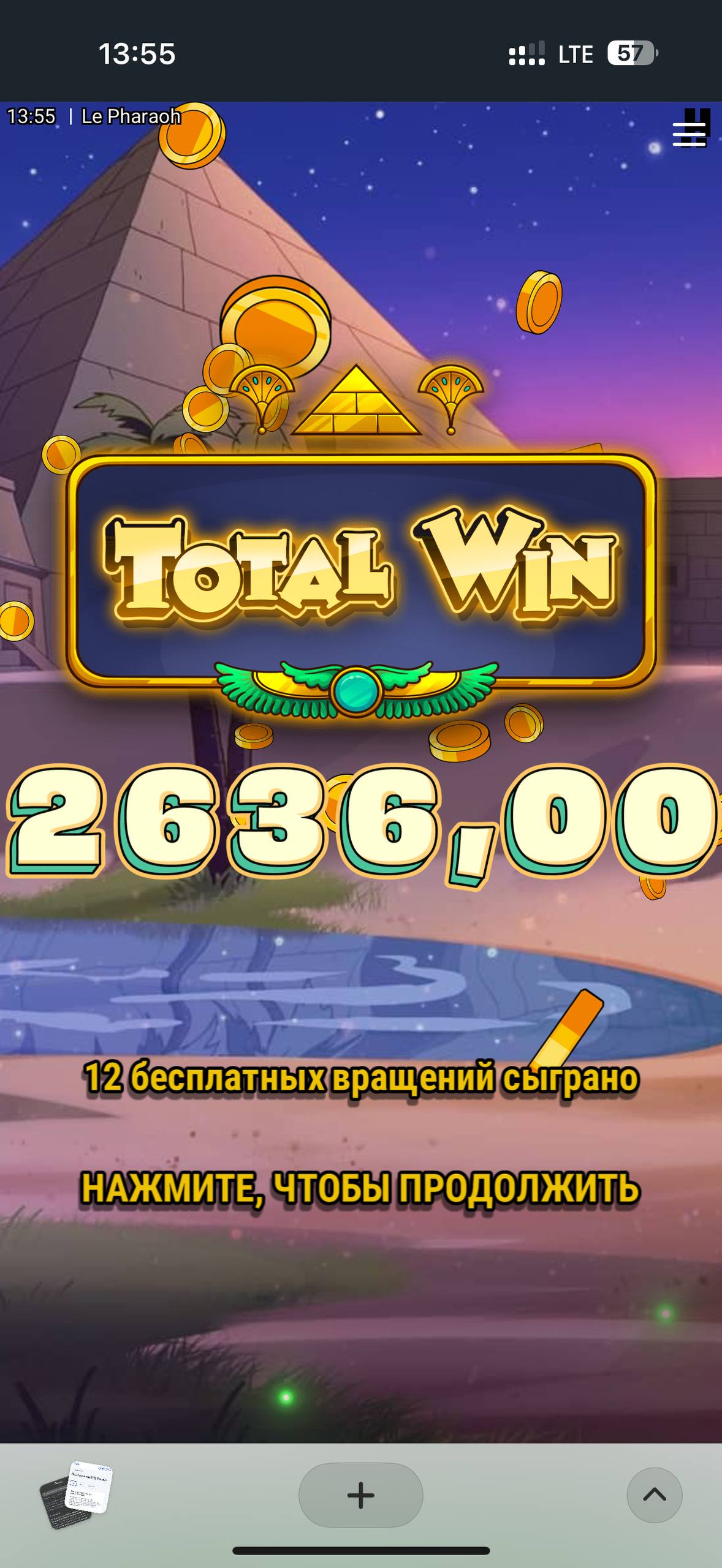 После своих плюсовых бонусок на Jetton я решил зайти к енотику, но он мне был не рад. Зашёл в Le Pharaon и купил бонуску, так же как и везде (топовую за 10к), но сегодня енот почему-то не хотел меня радовать и дал лишь 2600 рублей. После таких выигрышей даже как-то неприятно, но ладно — я не в минусе. Всем заносов!
