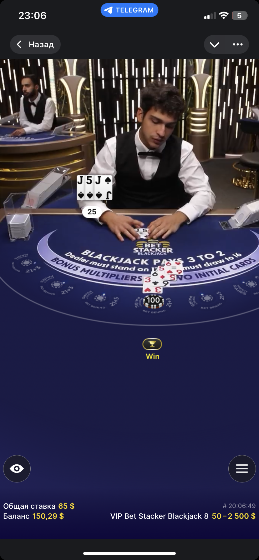 Рискнул в блэкджеке и не дал дилеру выиграть