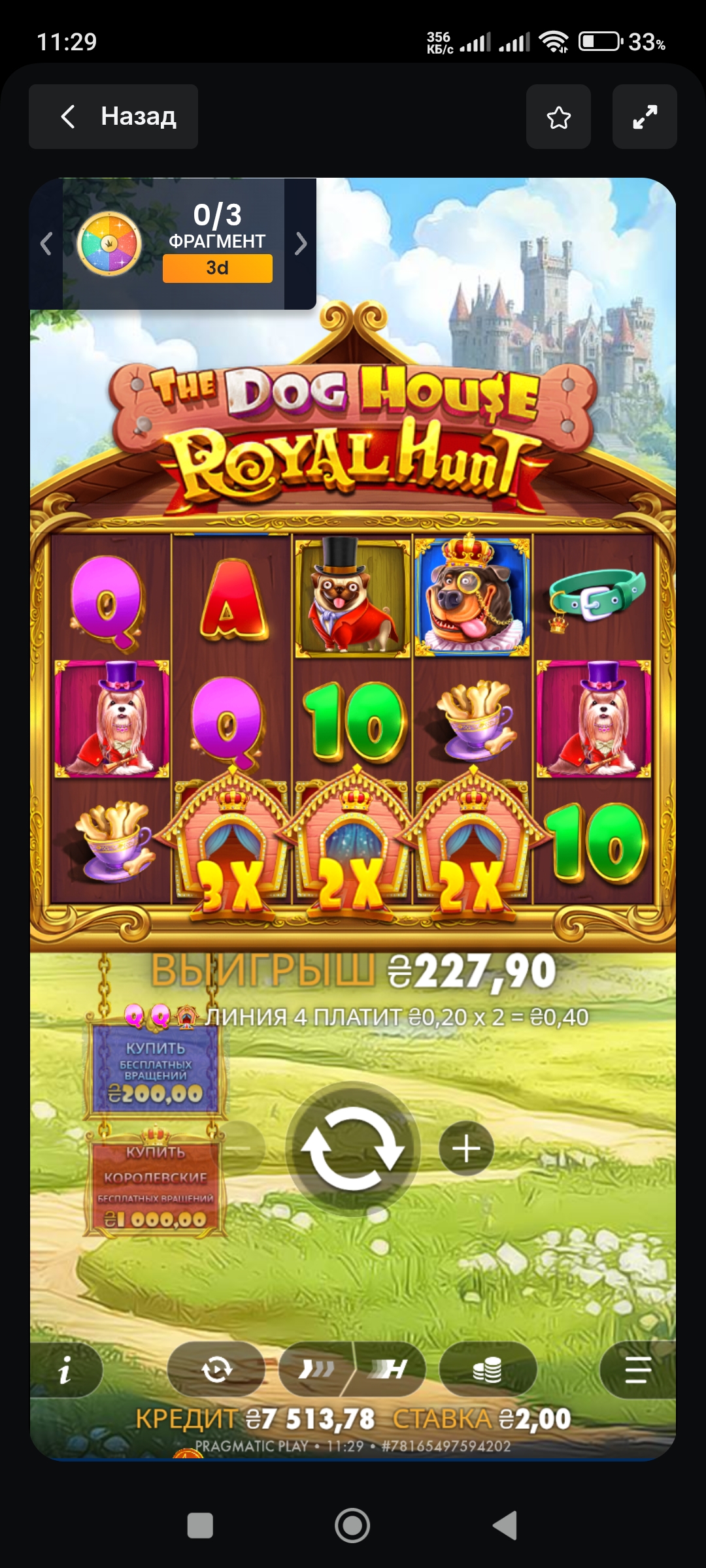 Dogs house royal hunt захожу на расслабоне крутить этот слот, что-то особого не жду, так азарт на место после рулетки поставить. Зашел крутить спины и тут поляна с розовыми собаками и еще и линию закрыла, самое удивительное, что в спине дает больше, чем в 15 спинах бонуски, но если бы ставку увеличил, хрен такое бы выпало, сколько замечаю, как только повышаешь и немного же, сразу рубильник отключен(((