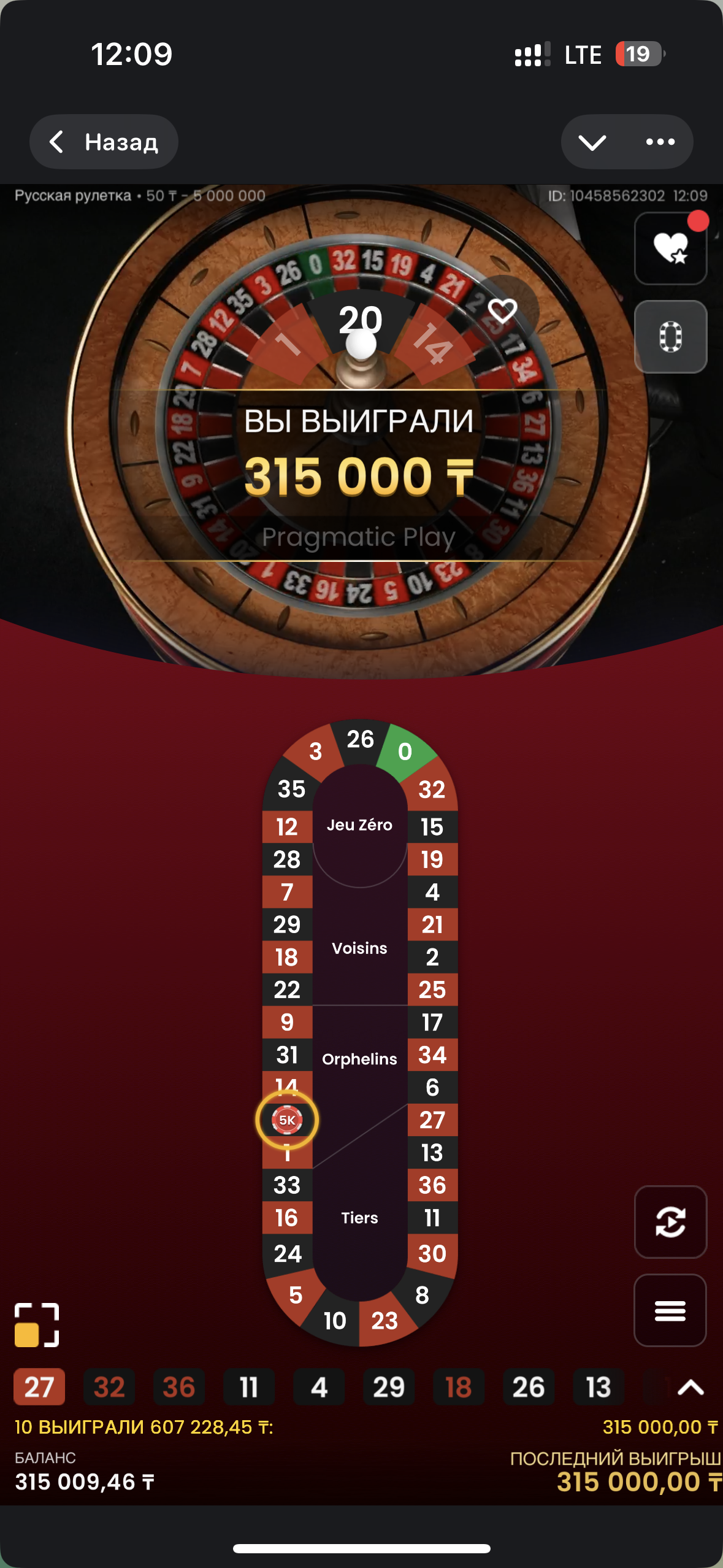 Выбрал рулетку, поставил скромную сумму на «красное». Первый спин — проигрыш. Второй — снова неудача. Но на третьем шаре шарик застыл на нужном цвете! Ставка удвоилась. Вдохновлённый, я продолжил — и удача словно решила задержаться со мной. Серия выигрышей, осторожные ставки, холодный расчёт… и вот на экране загорается цифра: 315000 тенге.