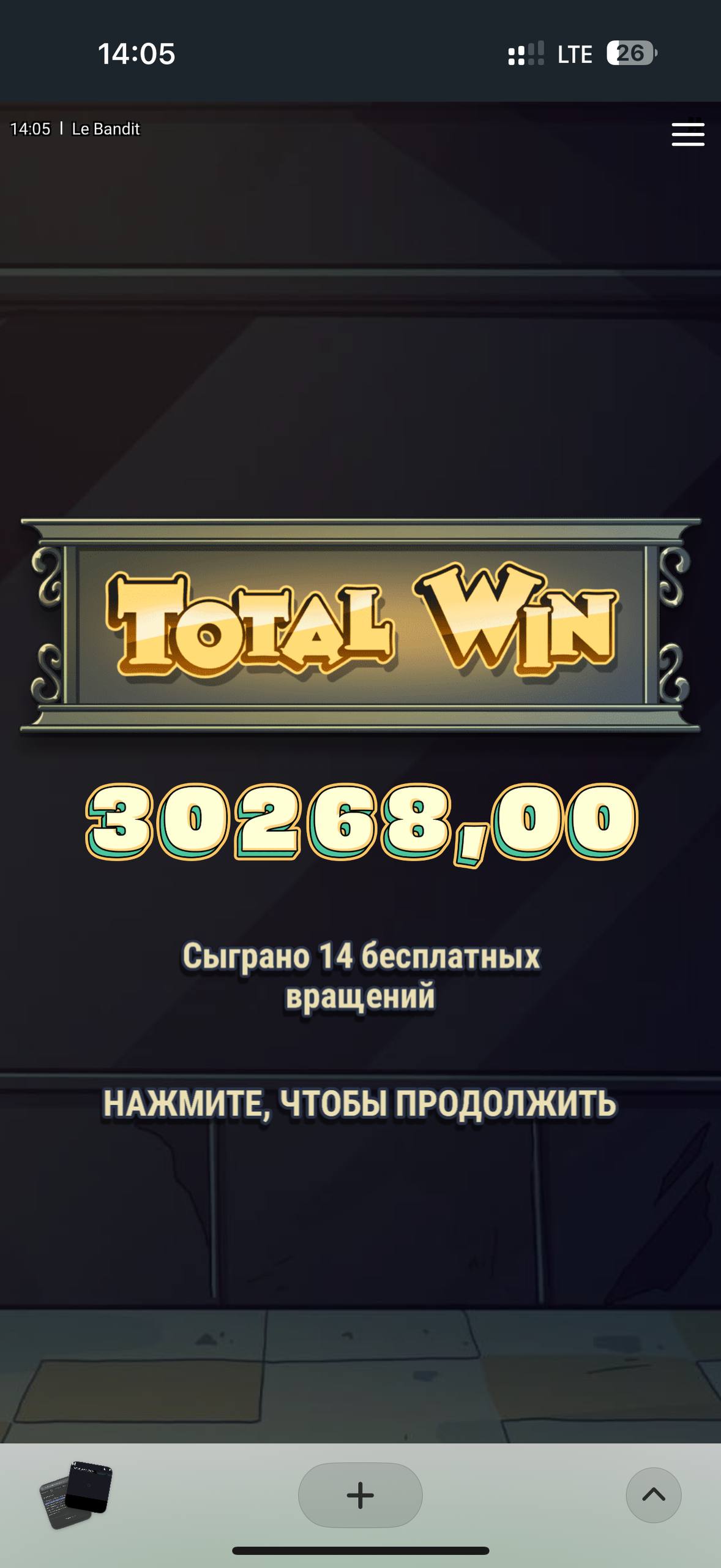 Всем привет! Выйдя из бандита я начал листать слоты от хаксоу, но не смог придумать ничего лучше чем дать бандиту последний шанс. И это было мое лучшее решение. Я опять же купил бонуску за 10000, но в этот раз все было абсолютно по другому. Выпало 3 радуги, жаль поле было разыграно хорошо лишь на последней радуге, я был приятно удивлен, когда монета х100 была умножена на 5, а еще и был собиратель. В итоге я наконец-то дожал ле бандита и выиграл 30000. Я был несказанно рад и на этом моменте решил вывести. Все желаю огромных заносов и таких же выводов! Спасибо за внимание