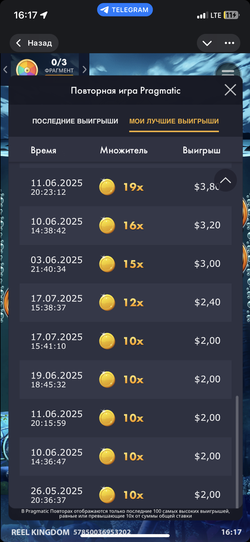 Когда я ловлю бонуску в этом слоте спустя 200 спинов, а вообще в таких играх функции должны запускаться чаще, она ещё ни разу не завершилась каким-то реально нормальным заносом. Это можно увидеть в скринах с лучшими выигрышами: единственный более менее адекватный выигрыш был в начале июня, всё остальное — полный ужас.