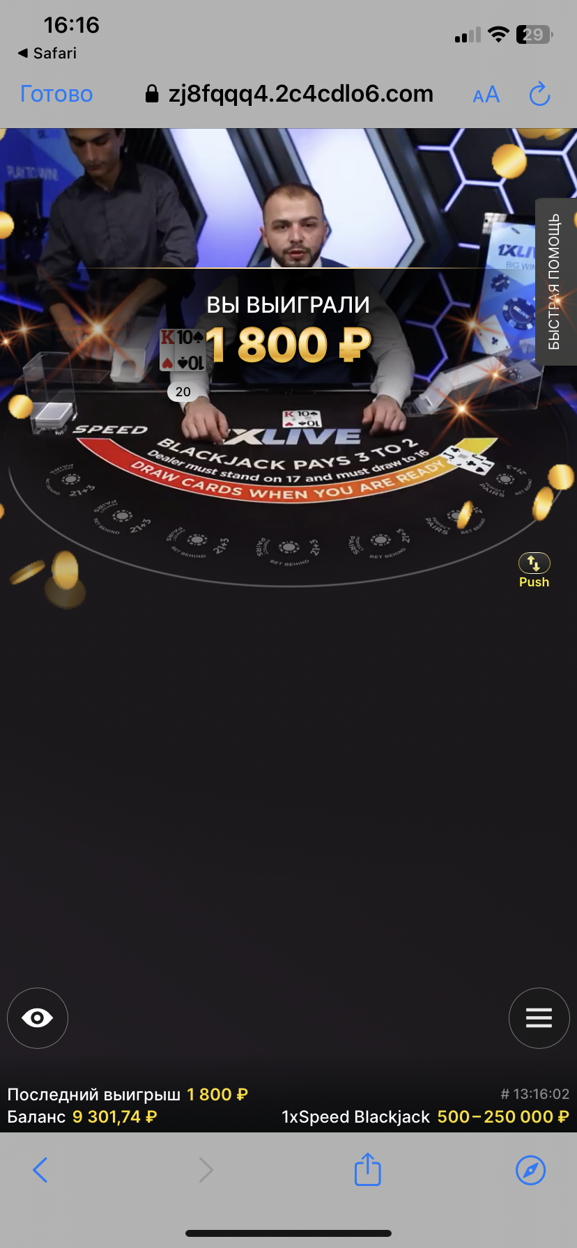 То шо такое произошло в 1хBet, лично мне, сложно поверить, уж слишком много негатива прошлого за ним тянется… Но то шо 10 раз подряд обыграть дилера в BJ это достойно восхищения, главное помнить шо фарт не вечен)
