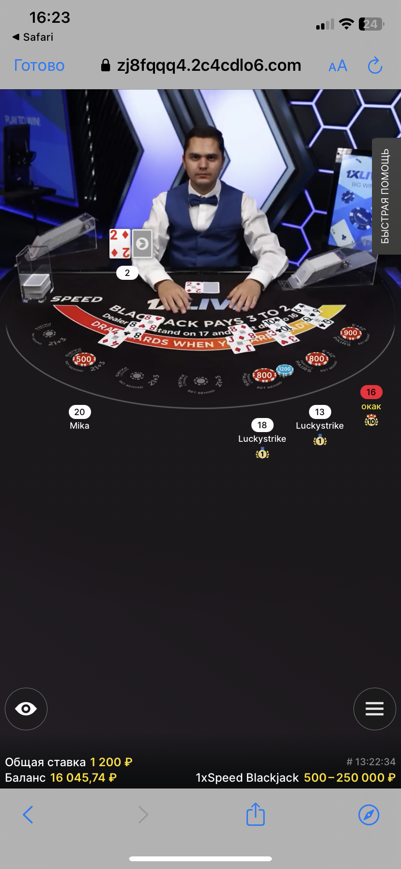 Вот как я всё-таки люблю фирменные столы блэкджека от 1xBet!) Постоянно везёт именно там. После супер неудачной сессии в Lightning Storm я смог удачно камбэкнуть баланс, да ещё и выиграв 10 раз подряд, что по-моему является моим рекордом. Дилер мог несколько раз со своими приколами выиграть, но постоянно перебирал, ещё и бонусные ставки удалось половить. Вот от таких раздач карт реально приятно продолжать играть в этот режим, а не то, что происходит на обычных, эволюшиновских столах