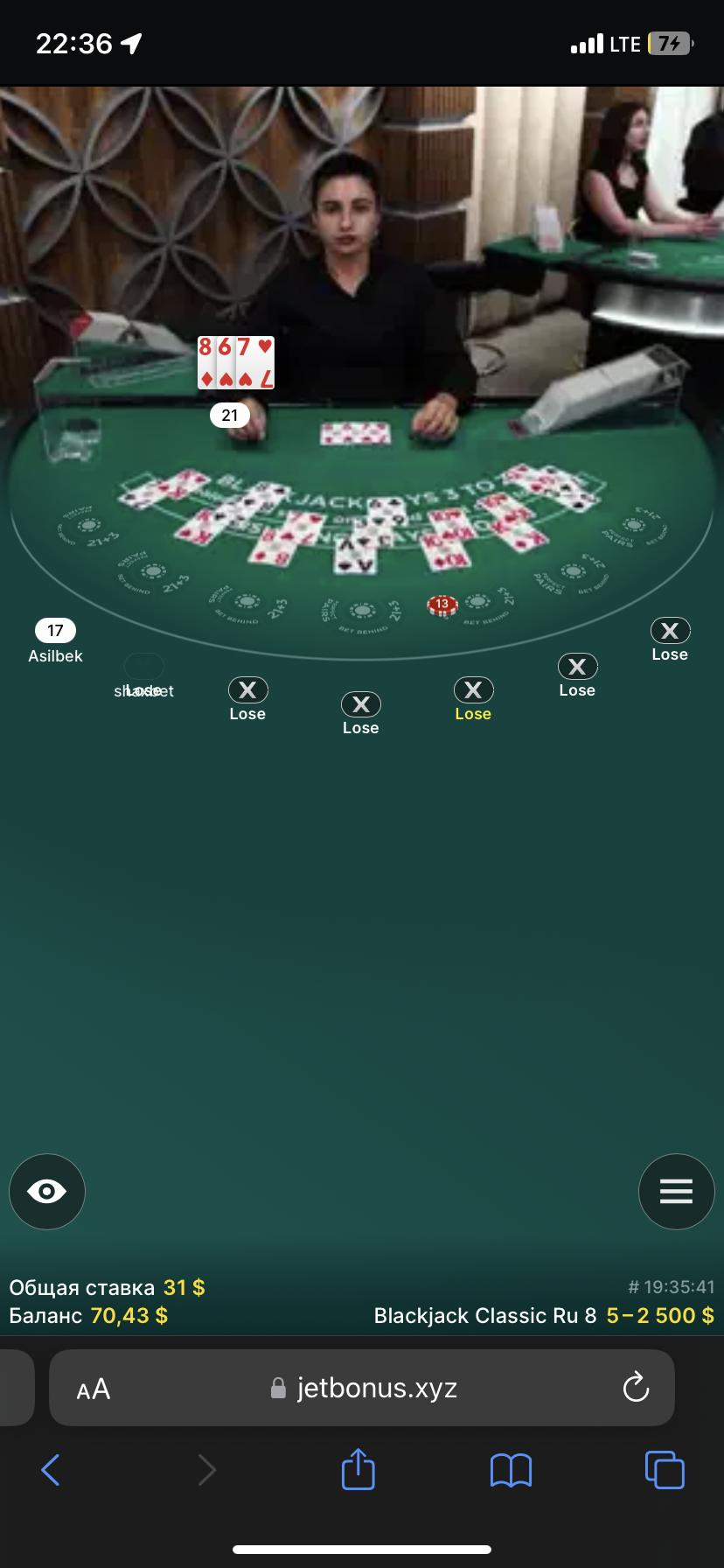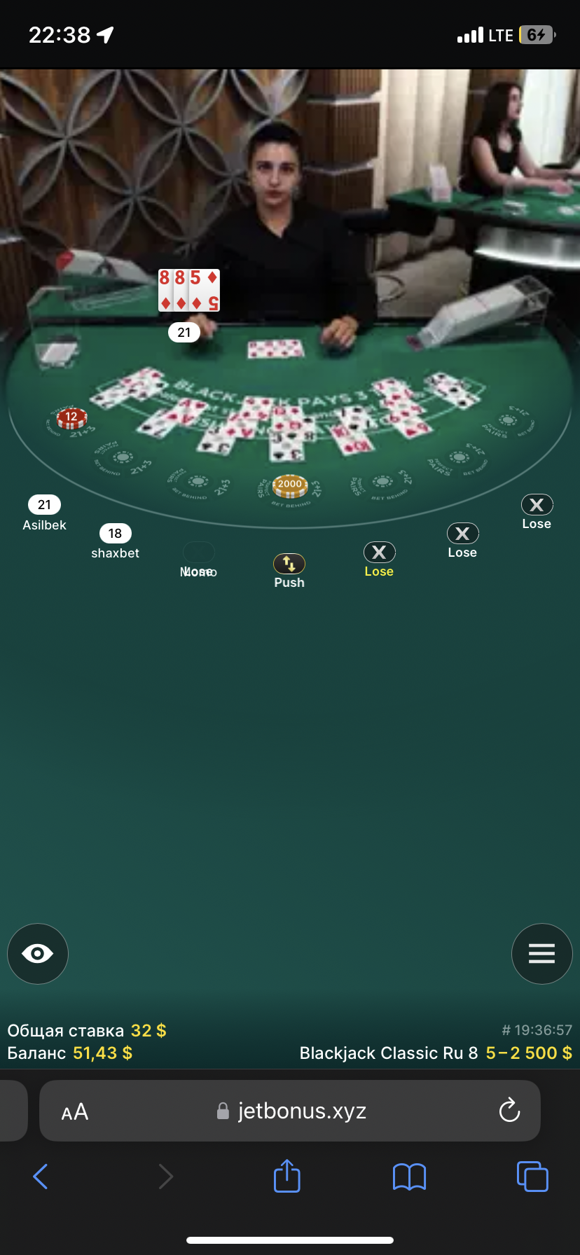 В лайве с дилером в блэкджек, как и ряд других игр превратился в сплошную манипуляцию, где на «постое» выигрывает дилер… Такое выдел когда при советах «фартануло» поиграть с шулером в «21», только там было без вариантов, от слова совсем. Хорошо хоть тогда меня выручил мой л»юбимый» ПРЕФ и общий счет был 1:1)