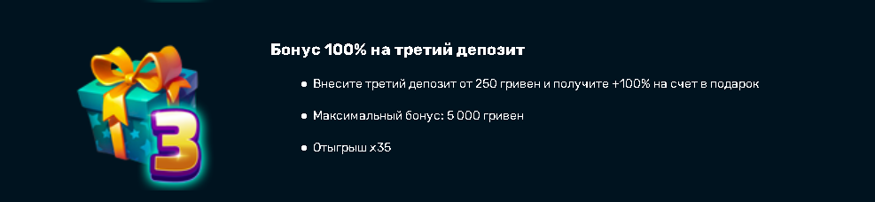 | Тип бонуса | 3rd Deposit Bonus (Читать описание) | ||