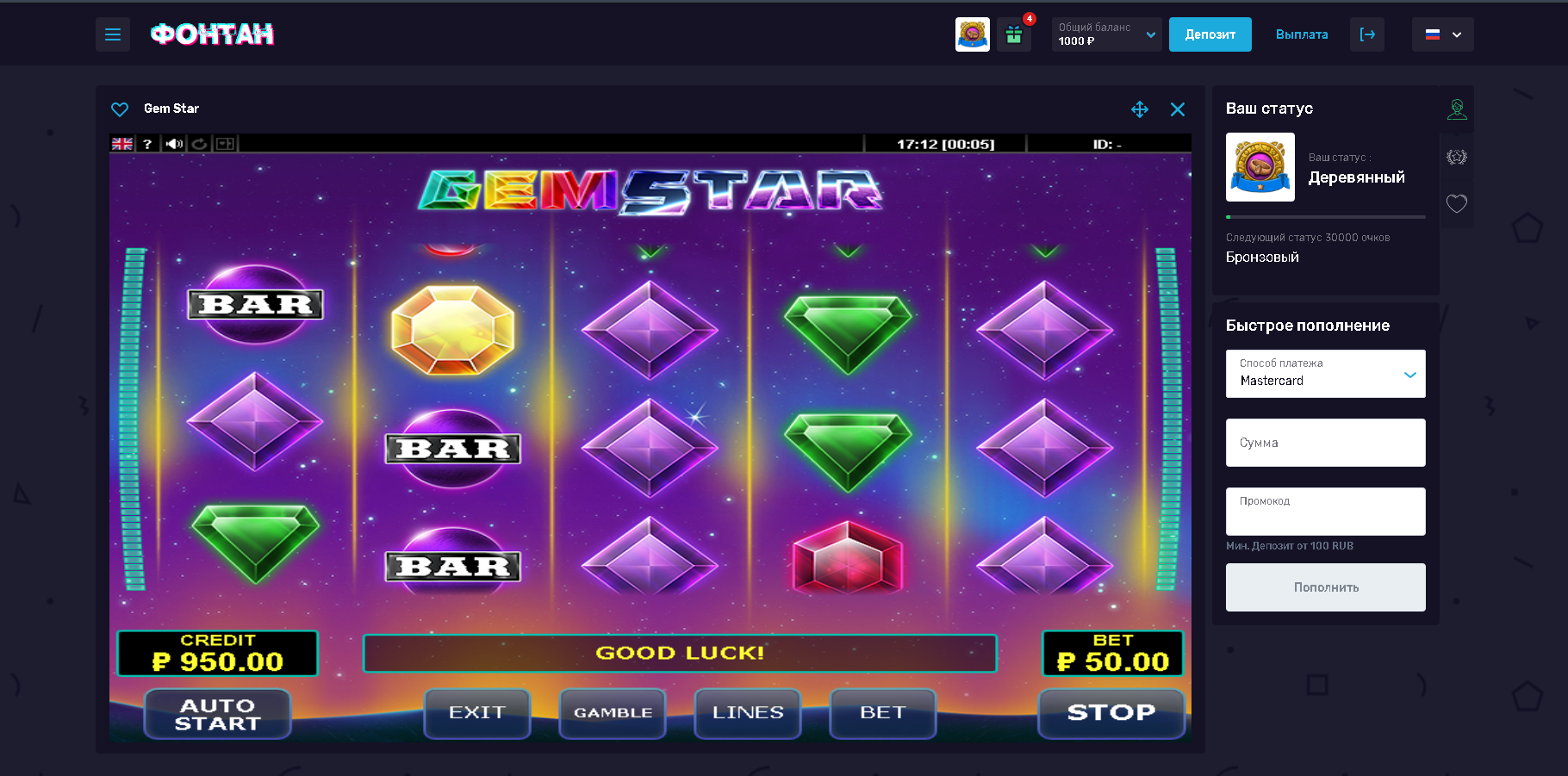 случайно отыграл бездеп бонус, но с выыводом появились проблемы, для того что бы вывести отыгранную сумму, нужно совершить минимальный депозит и прокрутить его х3. Но вот пополнить баланс можно только через систему piastrix, которая в свою очередь совсем не работает, кто сталкивался с данной проблемой , отпишитесь смоогли ли решить.. тех поддержка пообещала в скором времени ввести норм систему оплаты, но эт все воздух…. в итоге бонусная тыщща растворилась в небытие, да и пофиг. если уж казино проблемы испытывает с пополнением! баланса, но уж точно ничего хорошего ждать не стоит. кстати отыграл бонус в игре «Jack Hammer»—netent провайдер. сперва по ставке 50р навалили фри спины -итог 7+к затем ставку сделал по 1000 за ход, и чудесным образом пару етих ставок накидали больше Ну а в целом кому охото покрутить а реальные денежки уже проиграли в др. казино, милости прошу в фонтан, в целом сайт удобный игр много, даже с титечками есть всякие))) ну и вдруг вам повезет больше чем мне, и вы не только отыграете бонус но и сможете его вывести 50к. жаль что ето все только бонусяки конечно(( а так по своему опыту скажу, единственное казино в котором получилось отыграть и без проблем вывести выйгрыш это BetinHell casino. но оно давно уже приказало долго жить вроде как)) наверно поэтому и загнулось что бездепы выплачивали)))) Этого собственно вам и желаю, дорогие созависимые Товарищи))) и помните в Казино, всегда в выигрыше только Казино!